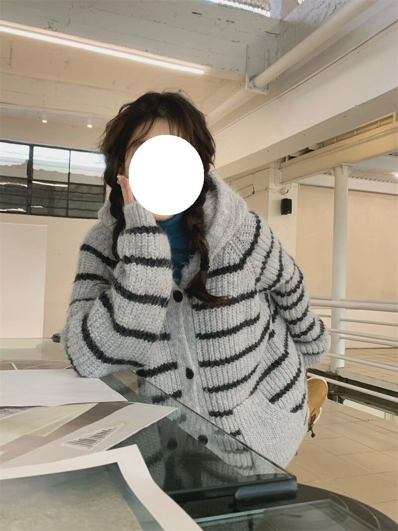 2024年春ins 新作 気質 レトロ セーター 帽子付き コート