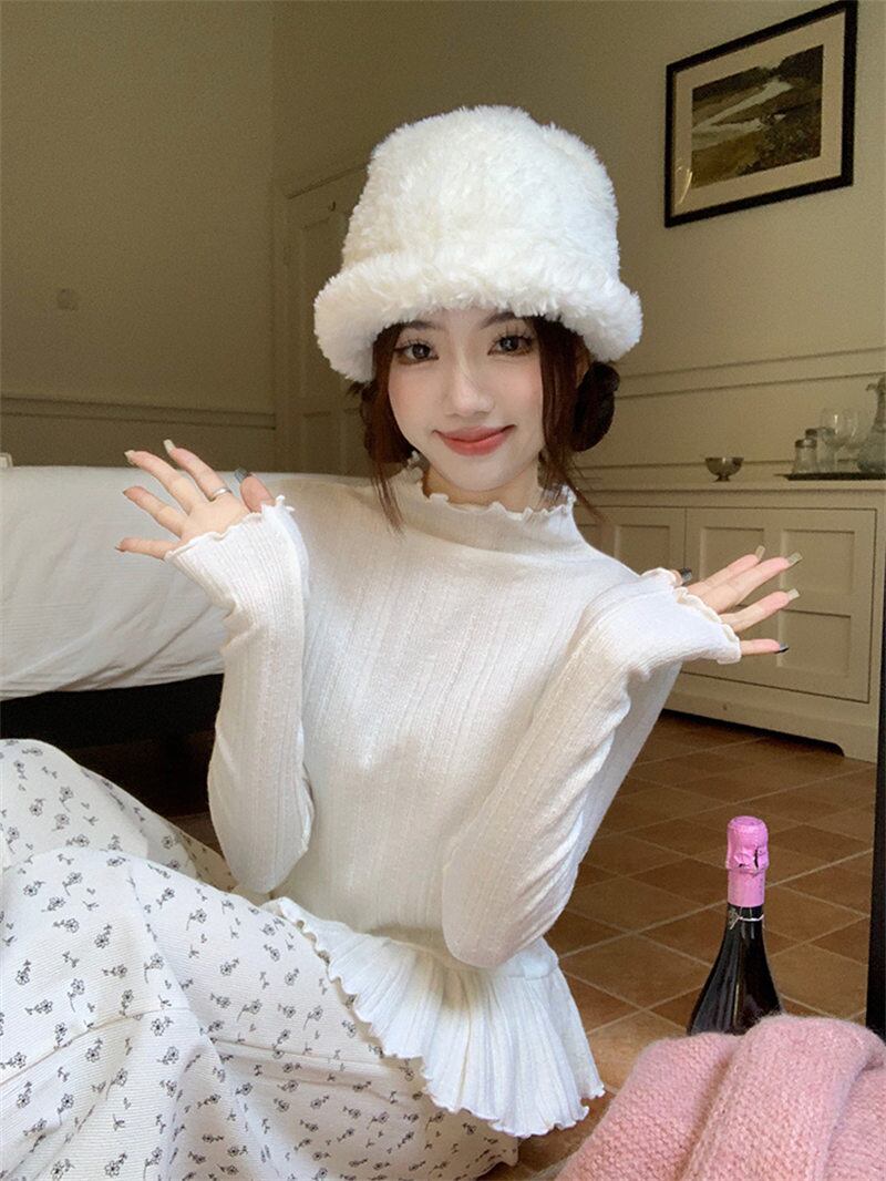 2024年春ins 新作 気質 レトロ セーター ニット フリル おしゃれ カジュアル