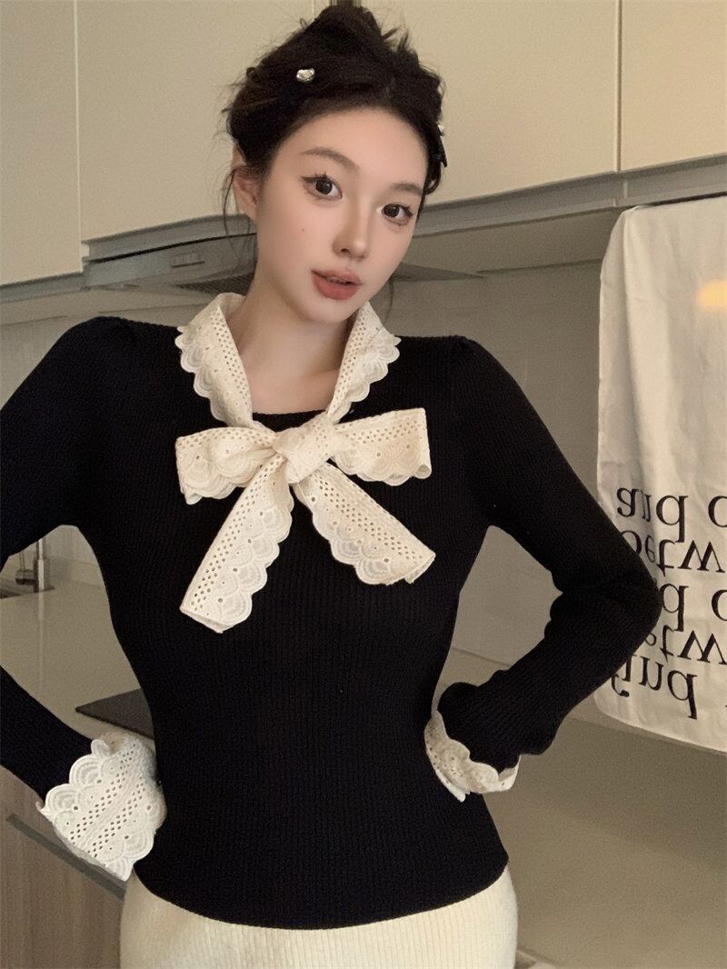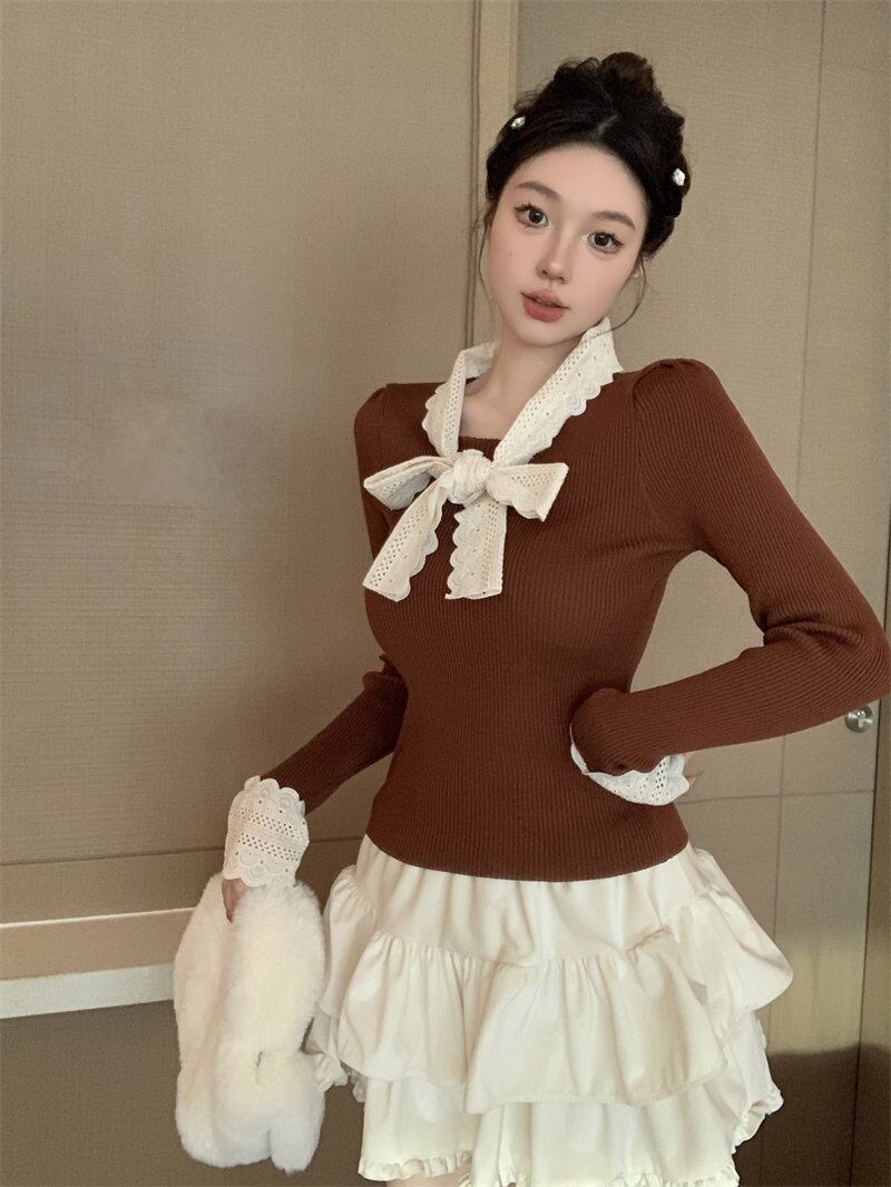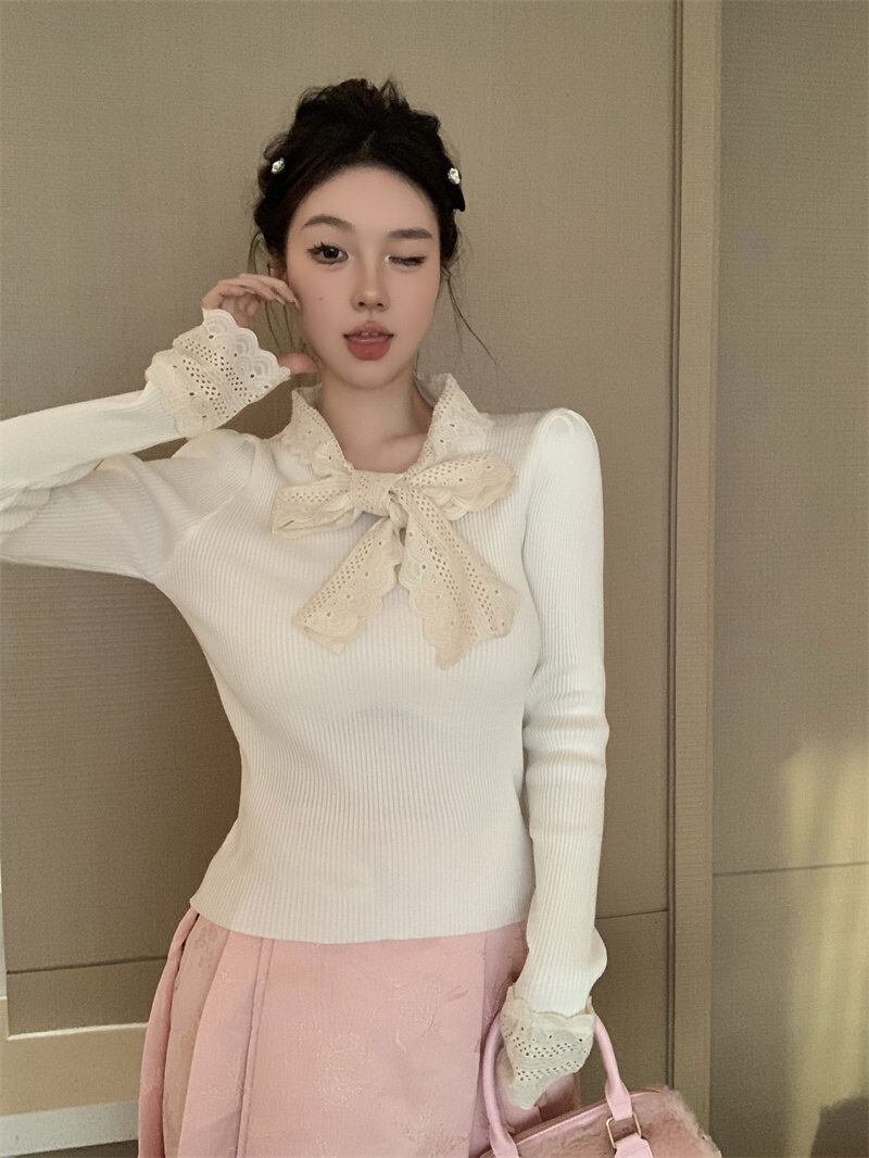 2024年新作 設計感 長袖 トップス おしゃれ リボン ニットセーター