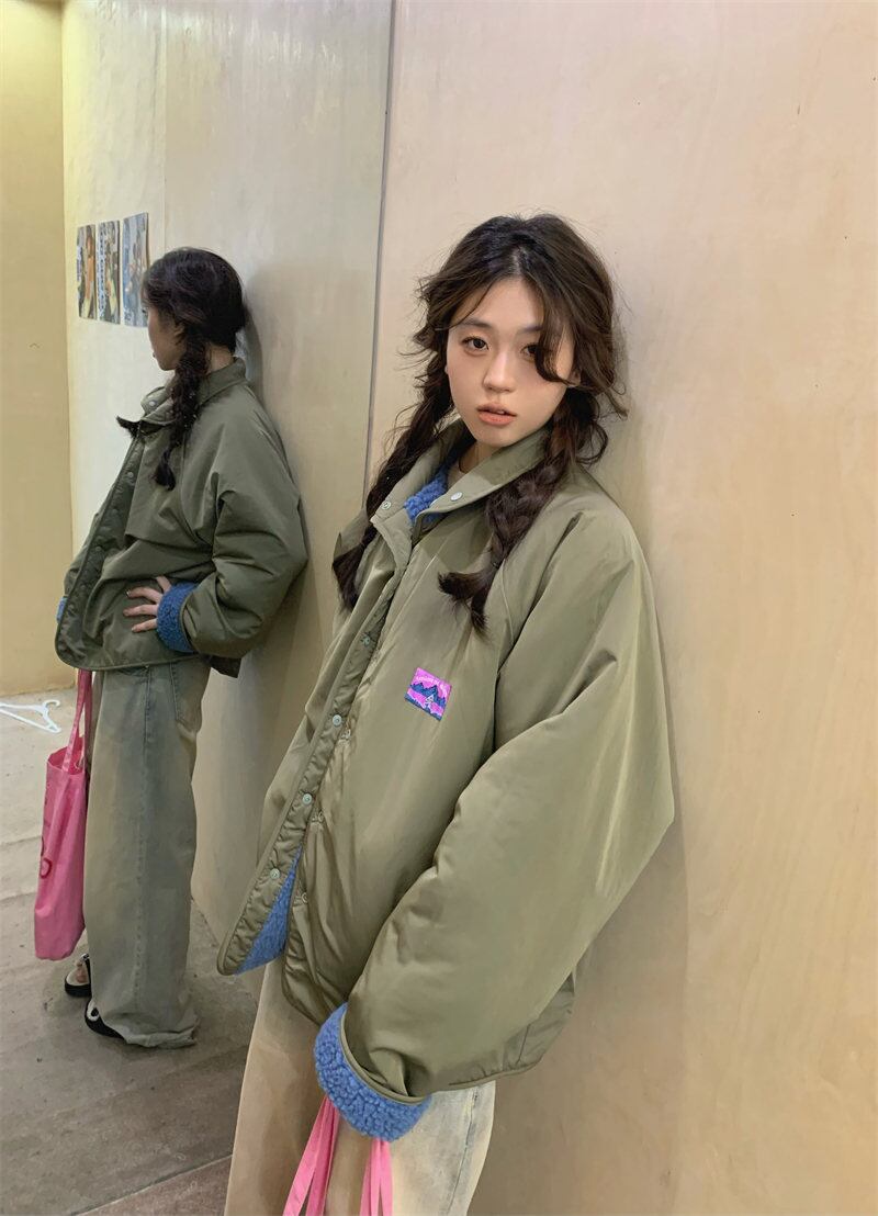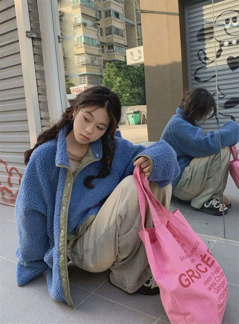 2024年新作 レトロ 設計感 両面着用可 ゆったり 長袖 フリース コート