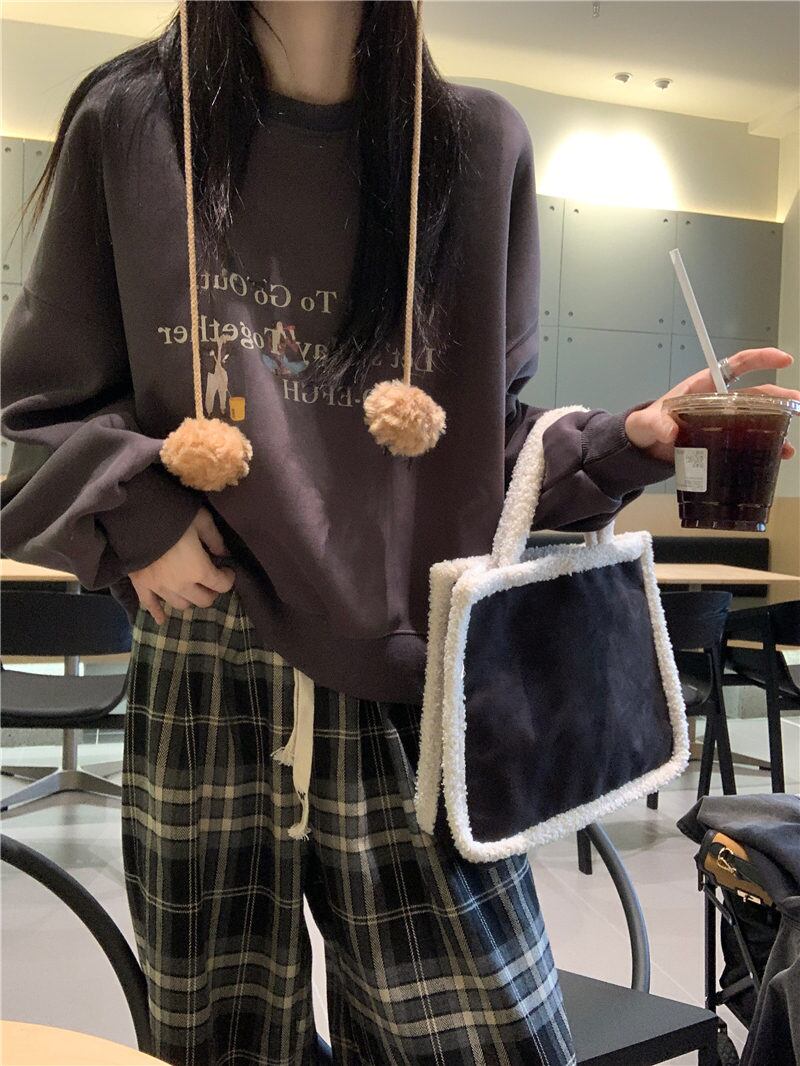 INS秋冬新作 レトロ 設計感 ゆったり 長袖 韓国風 裏起毛 トレーナー