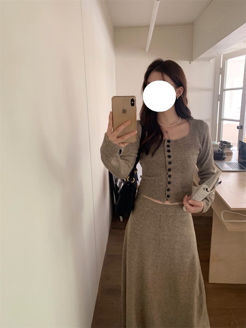 2023年秋冬新作 ニット カーディガン+セミロングスカート セット