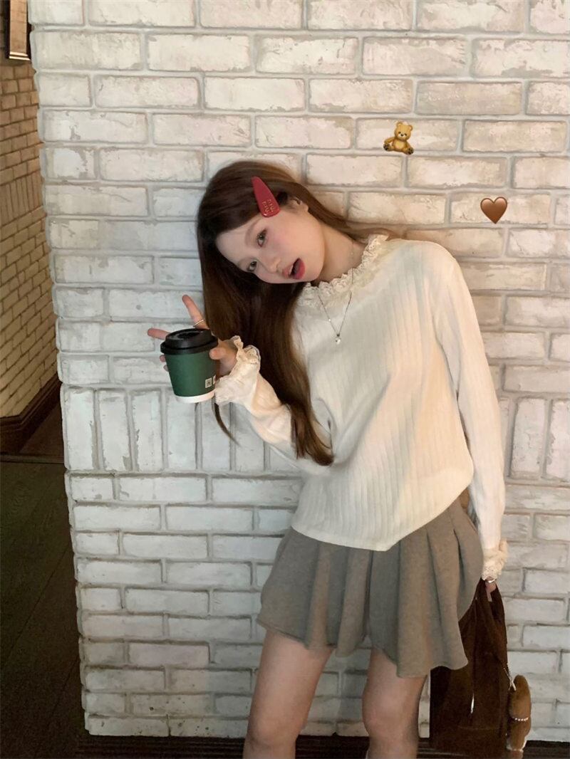 2023年冬新作 レトロ 優しい 合わせやすい 長袖 ニット生地 フリル セーター