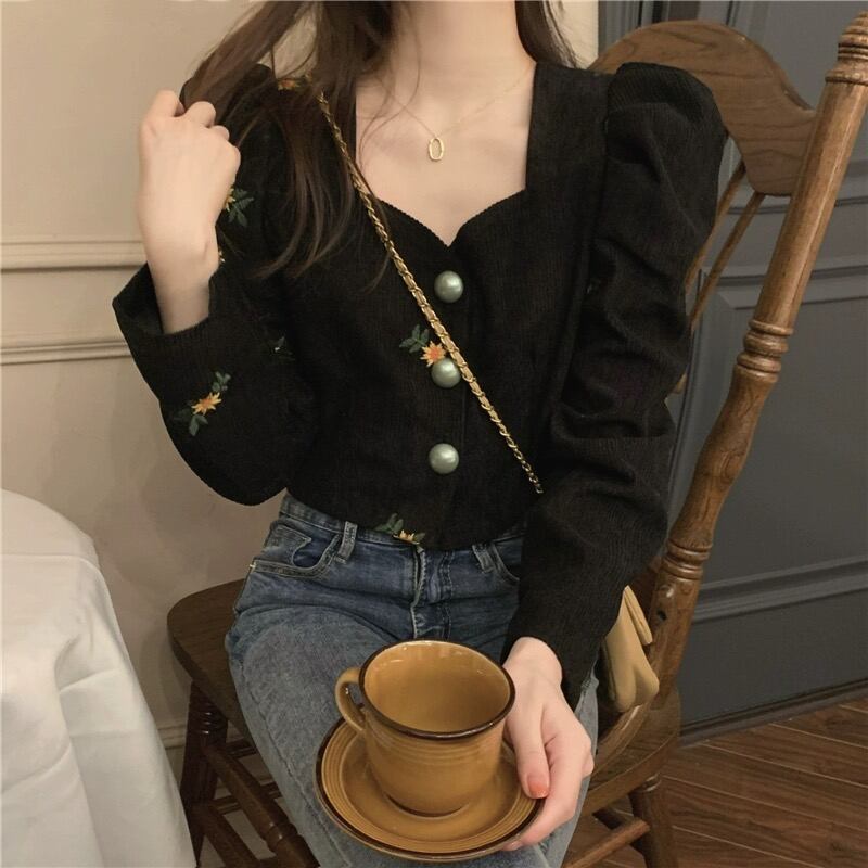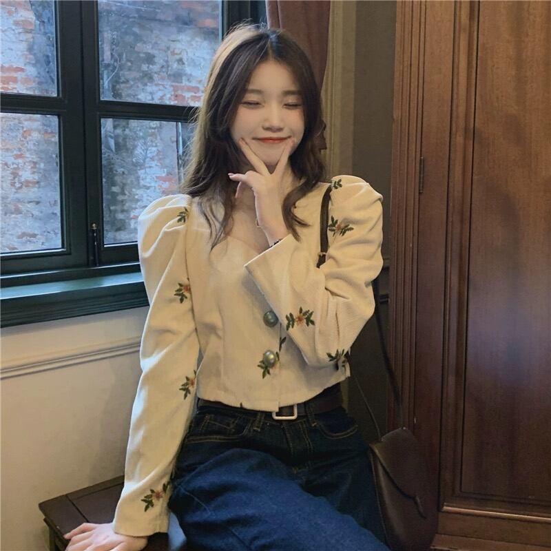 2023年冬新作 レトロ 合わせやすい ゆったり 長袖 刺繍シャツ/ブラウス