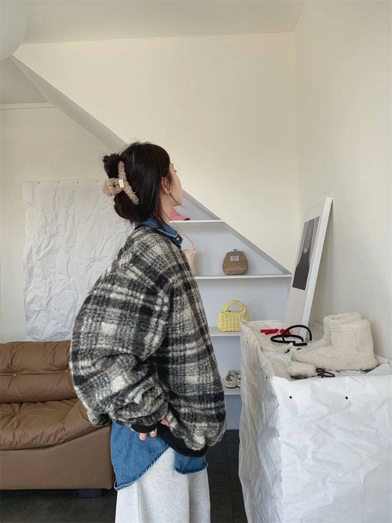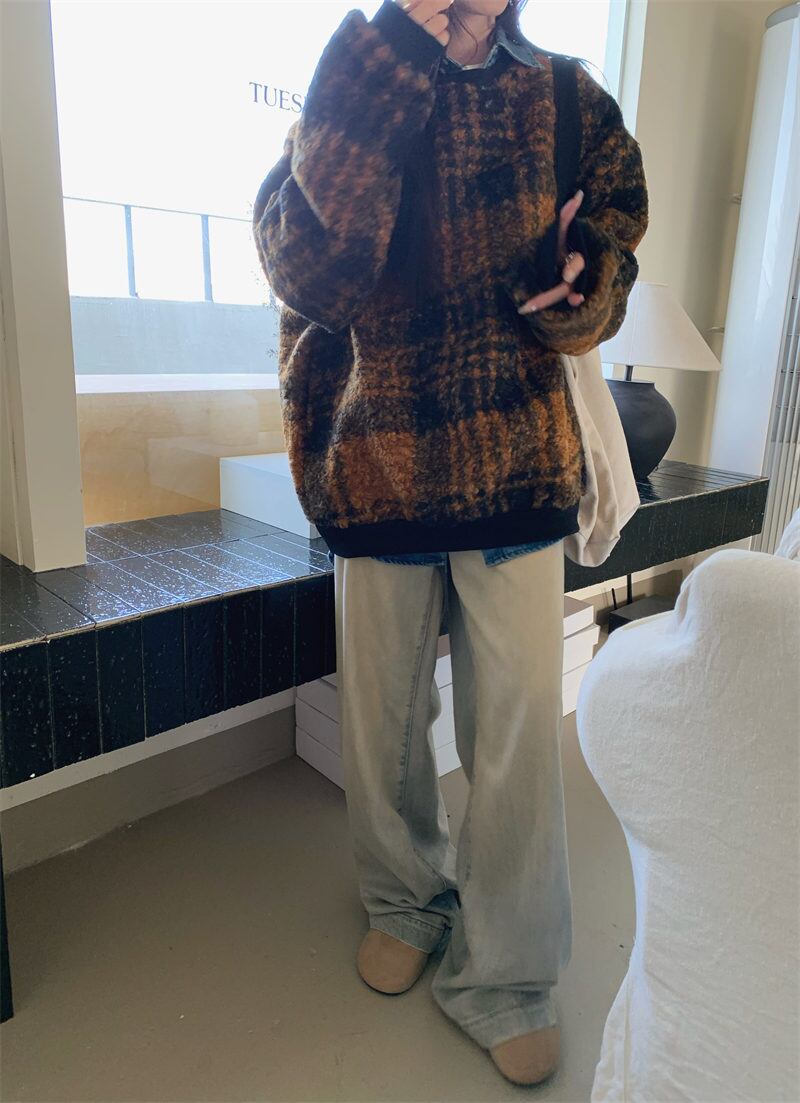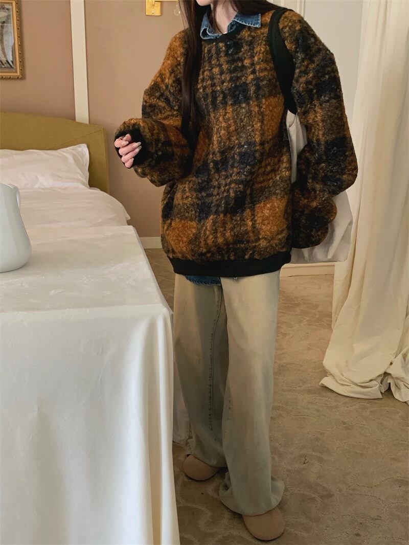 2023年冬新作 レトロ レイジー風 合わせやすい チェック柄 長袖 トレーナー