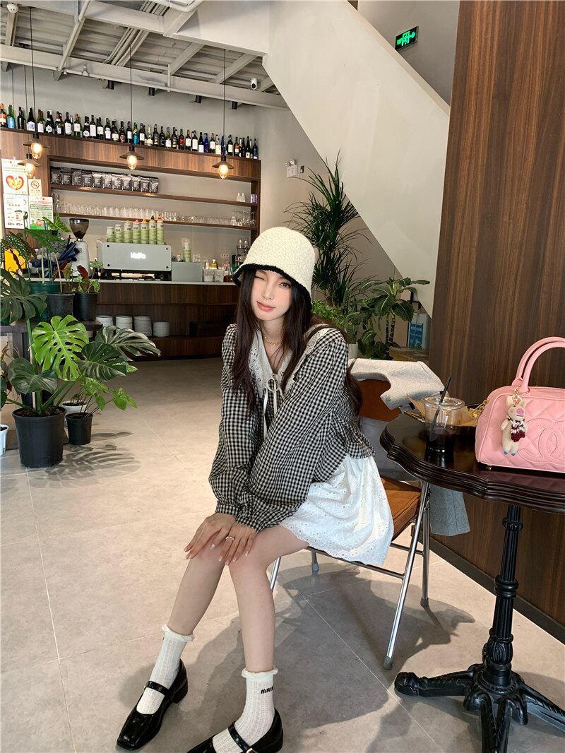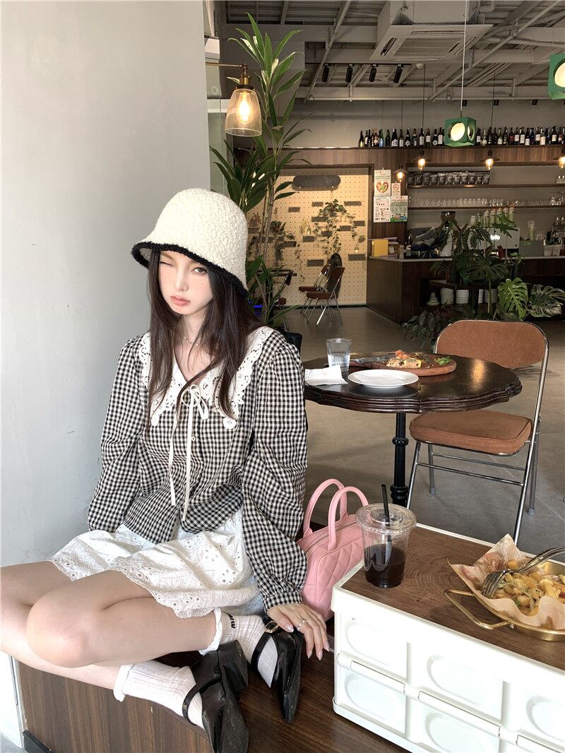 2023年冬新作 レトロ 合わせやすい ゆったり チェック柄 デコレーション シャツ/ブラウス