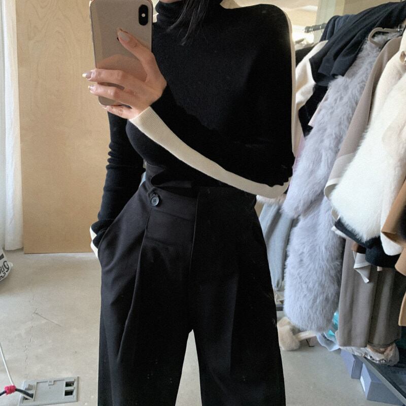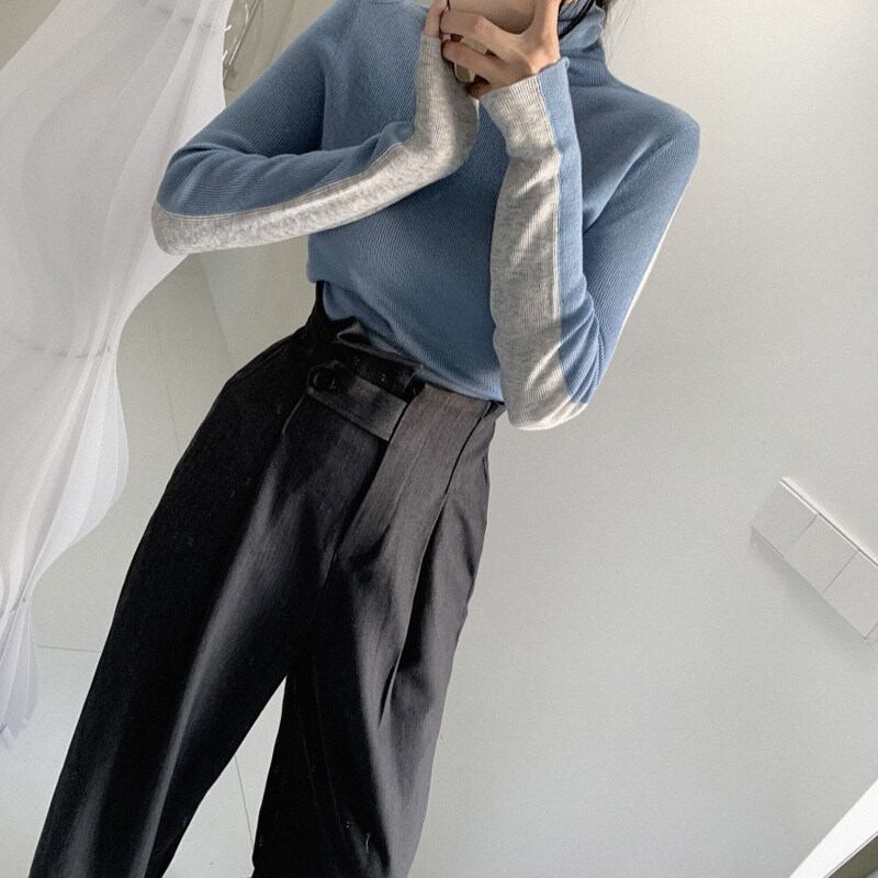 冬新作 若く見え ニット セーター トップス 前後着用可 カジュアル系 配色