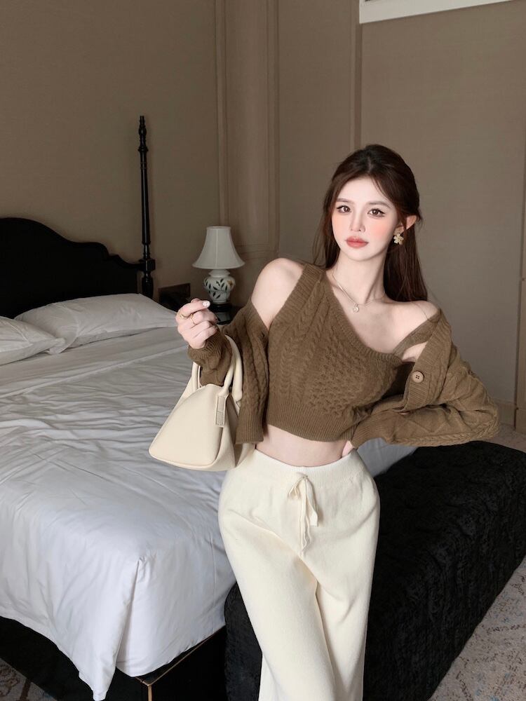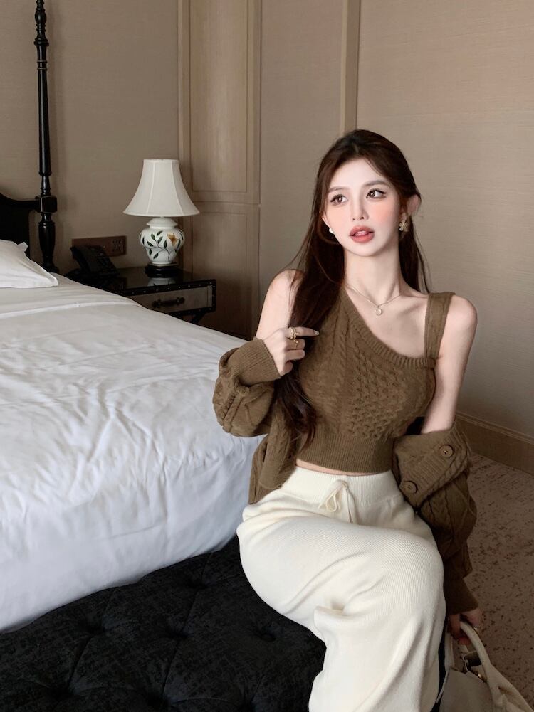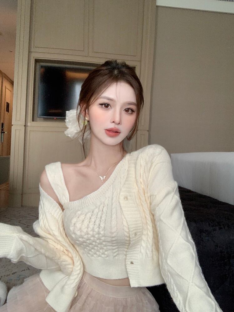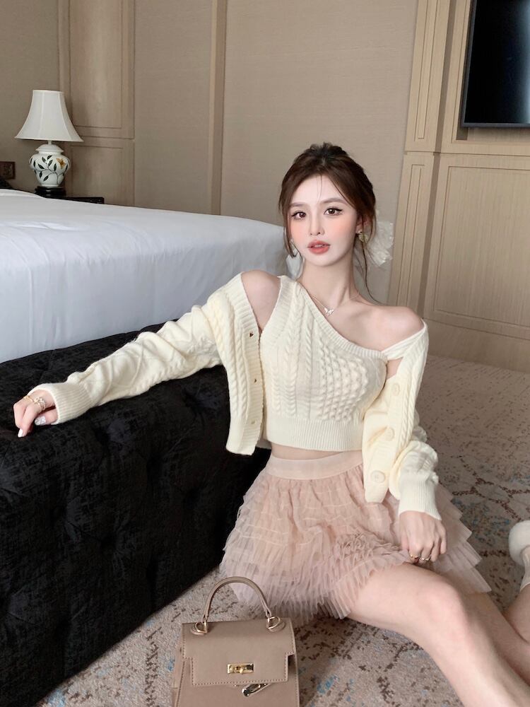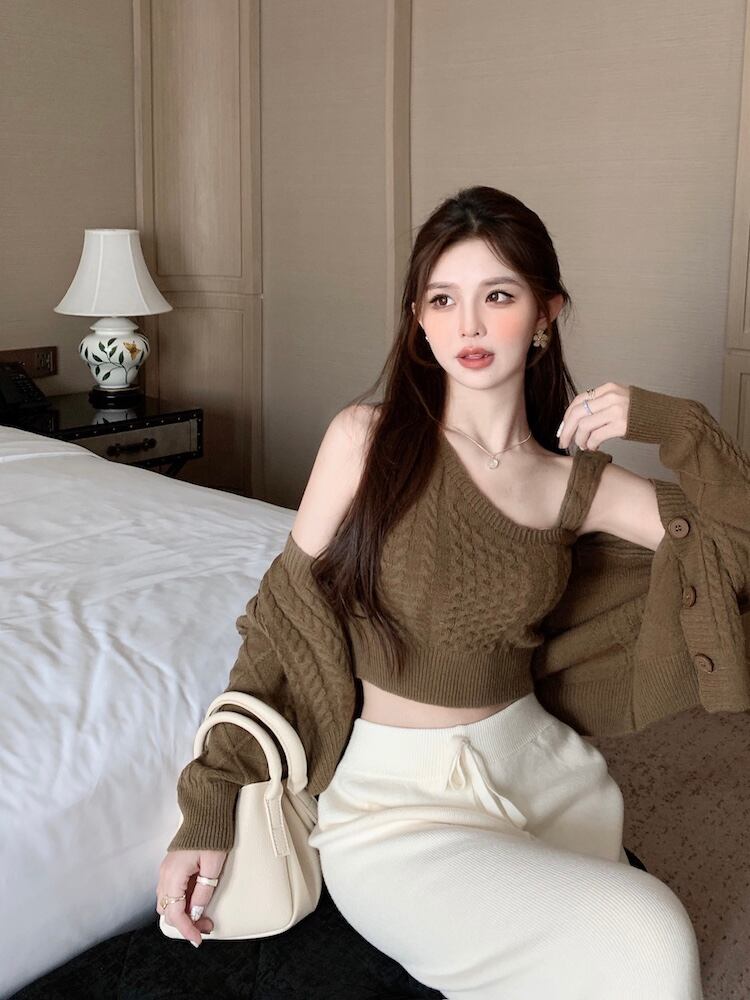 2023秋INS新作★設計感 気質 ベアトップ キャミソール+カーディガン セット