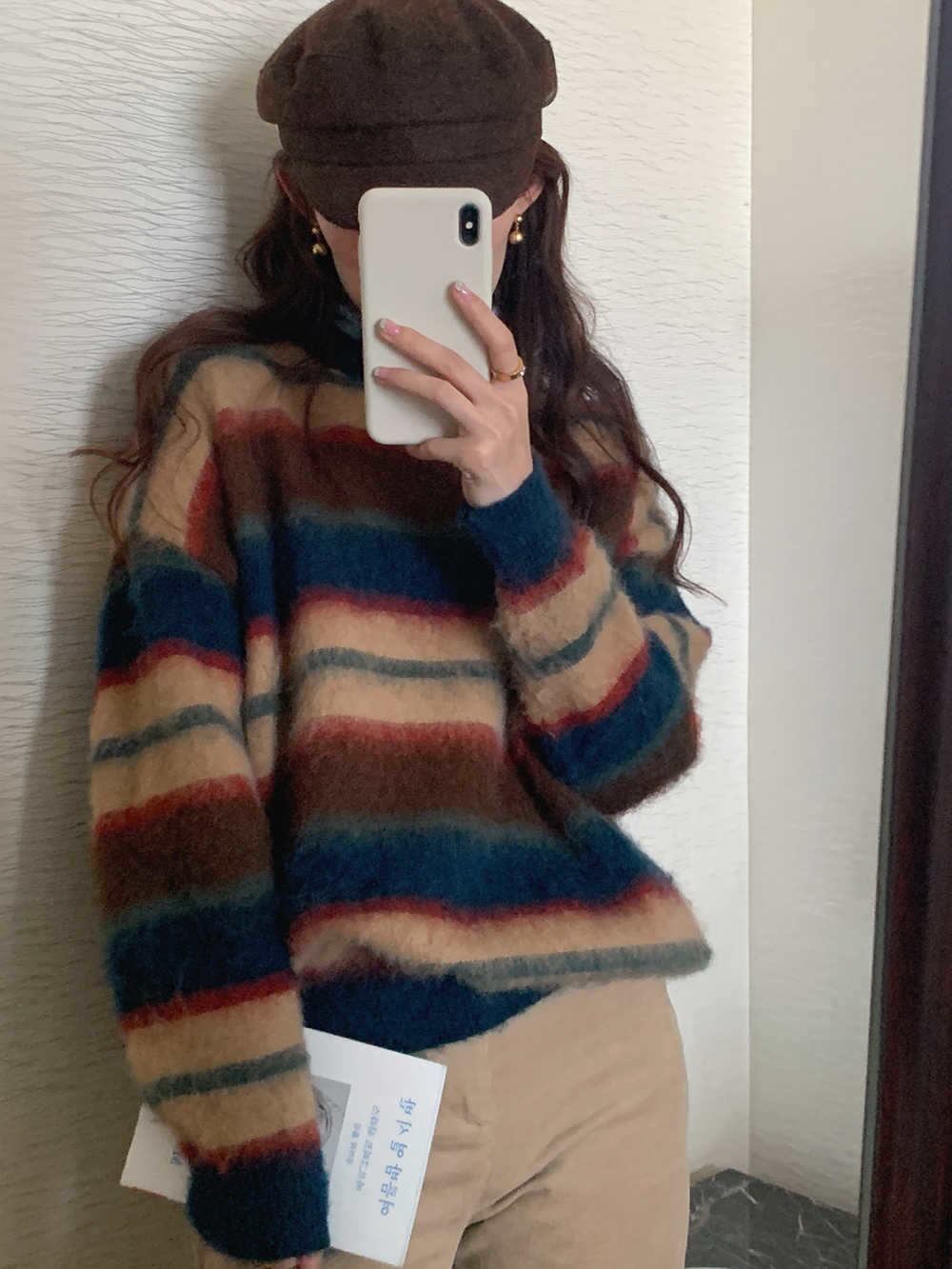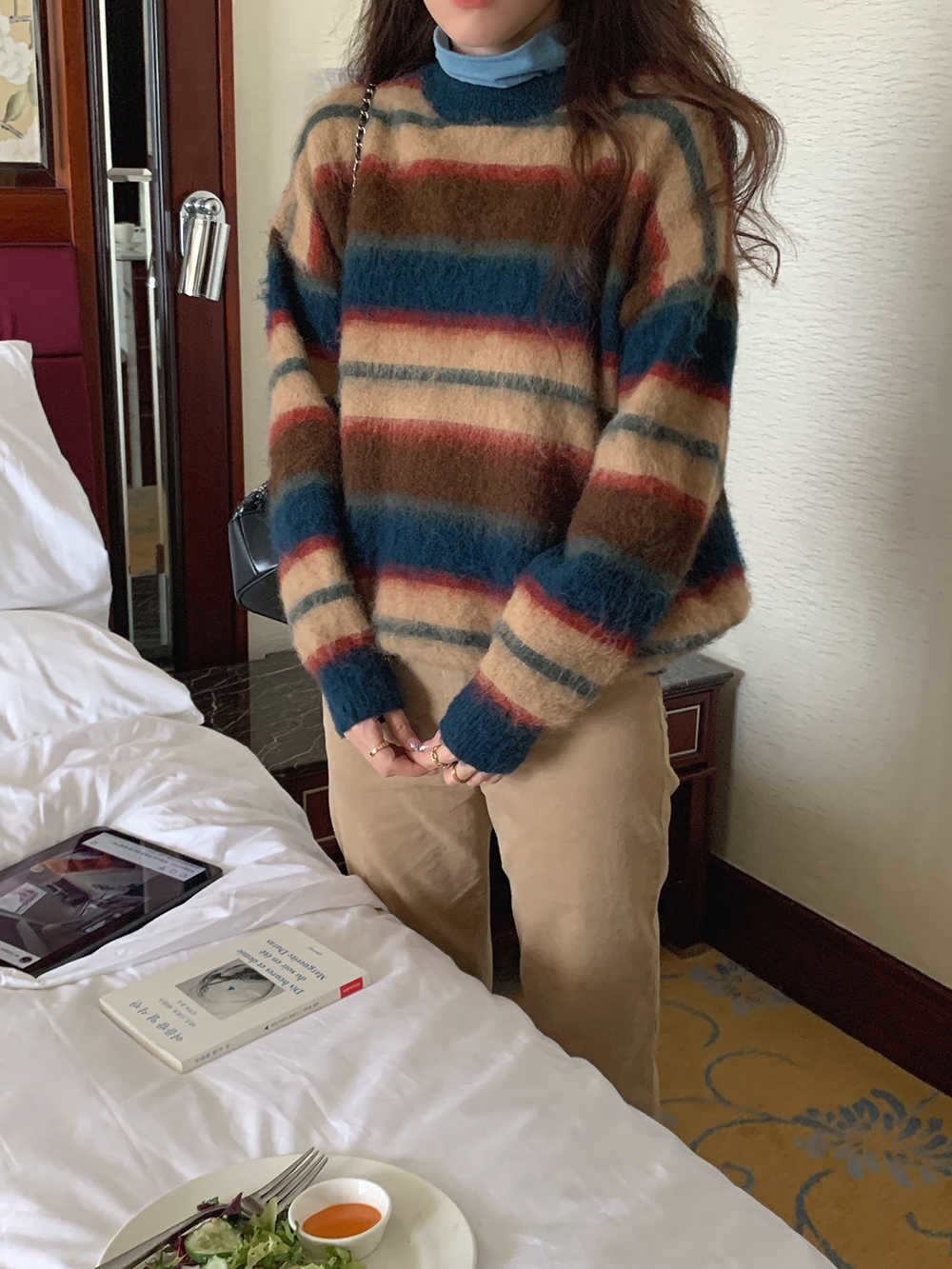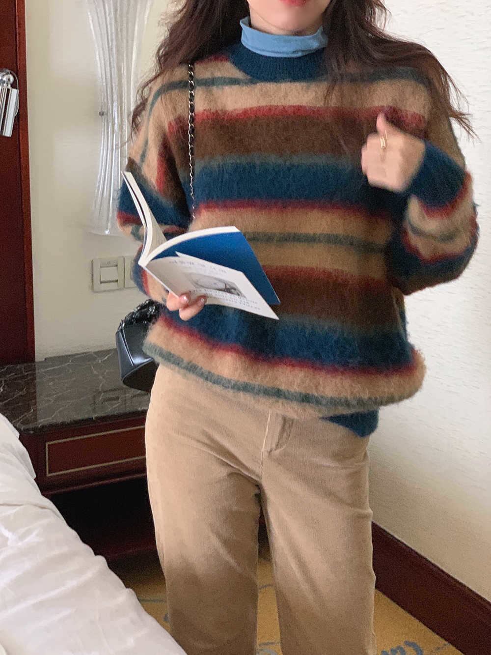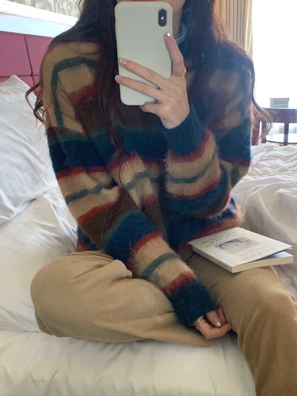 2023秋INS新作★カジュアル 韓国風 気質 ゆったり レトロ ストライプ 着心地抜群 セータ?