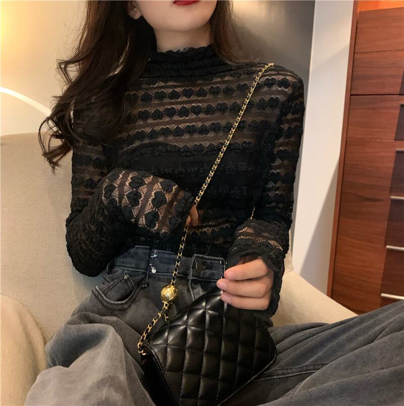 2023秋INS新作★トップス 気質 体型カバー 長袖 レース シャツ/ブラウス