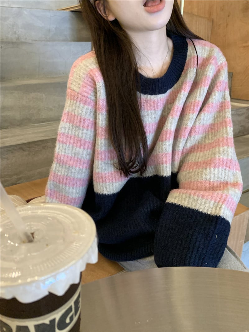 2023秋INS新作★カジュアル 韓国風 気質 ストライプ ゆったり 着心地抜群 ニット セータ?