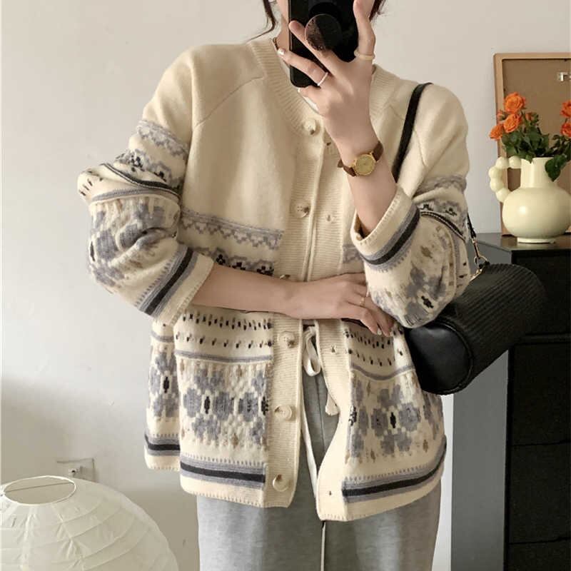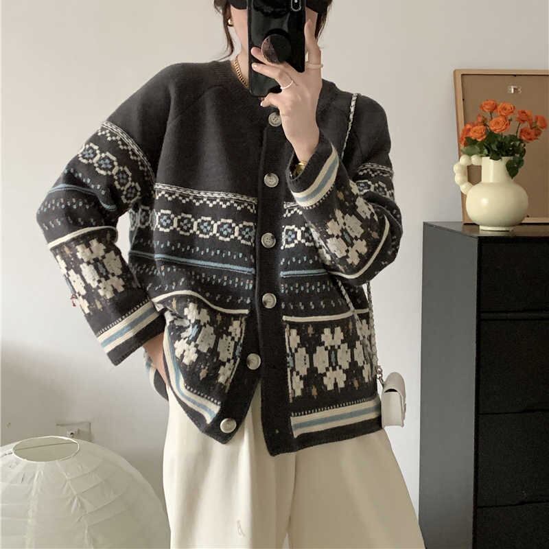2023秋INS新作★カジュアル 韓国風 気質 レトロ 花柄 着心地抜群 シングルブレスト ニット セータ?