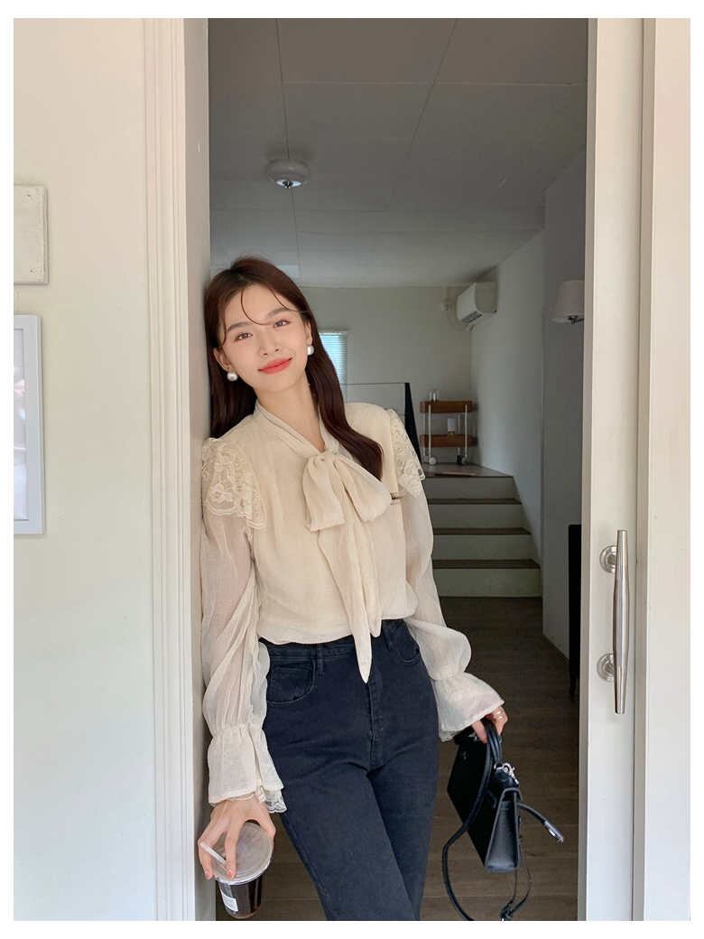 2023秋INS新作★カジュアル 韓国風 ピコットデザイン性 ベルスリープ 着心地抜群 ブラウス