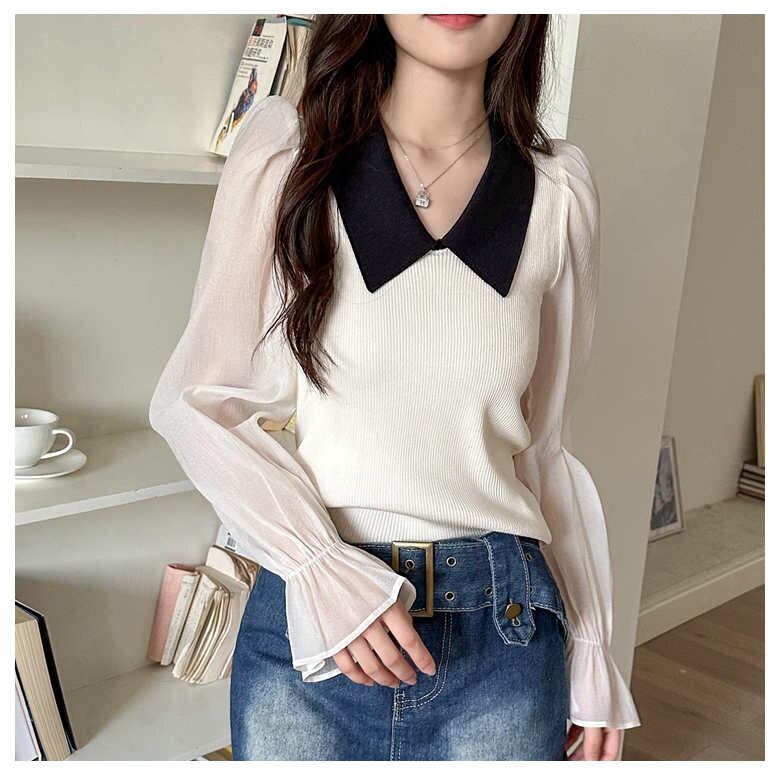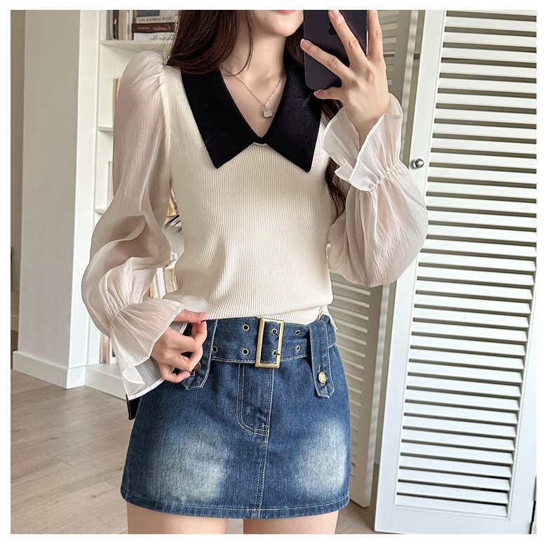 2023秋INS新作★カジュアル 韓国風 ストライプ柄 デザイン性 着心地抜群 ニット ブラウス