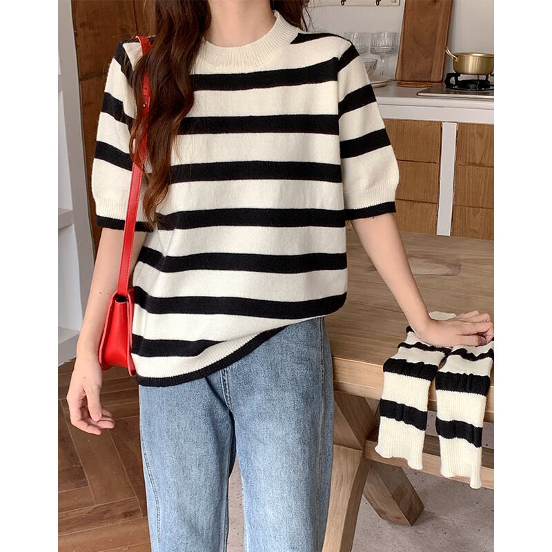 INS 秋新作 カジュアル ストライプ柄 ファッション 合わせやすい 生地ニット セーター