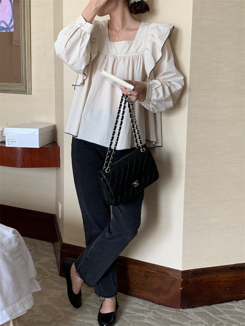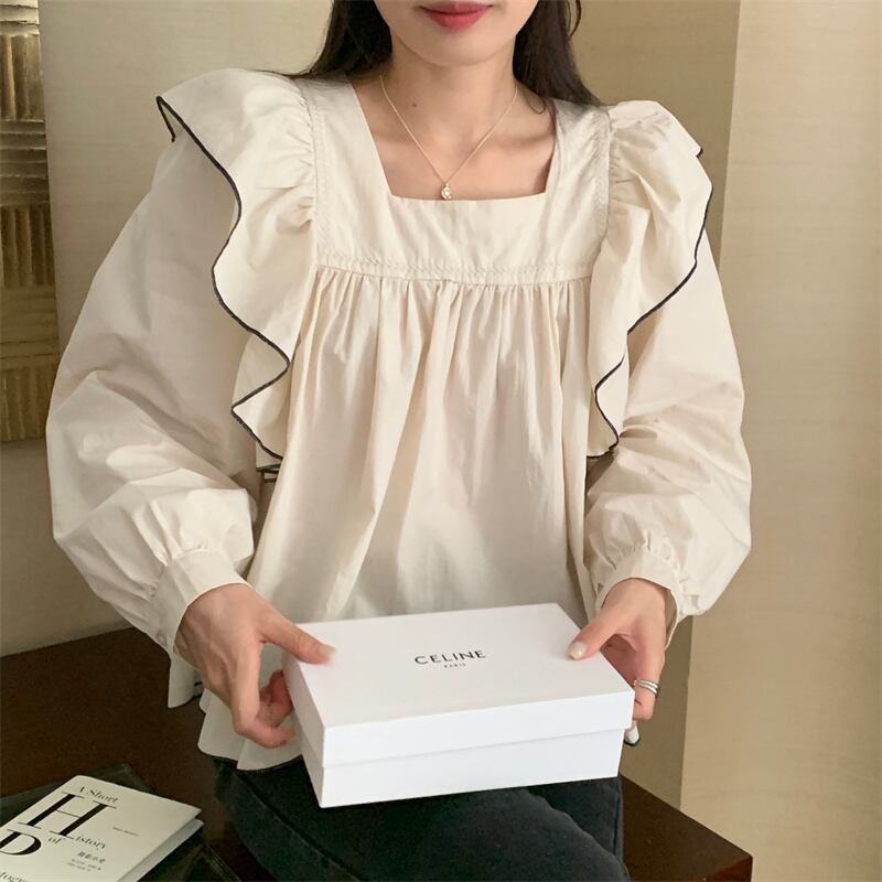 INS 秋新作 INS ファッション レトロ 気質 シンプル スクエアネック シャツ/ブラウス