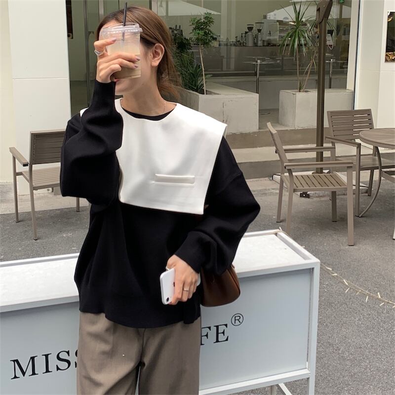 INS 秋新作 長袖 ニット セーター カジュアル リムーバブル ネック