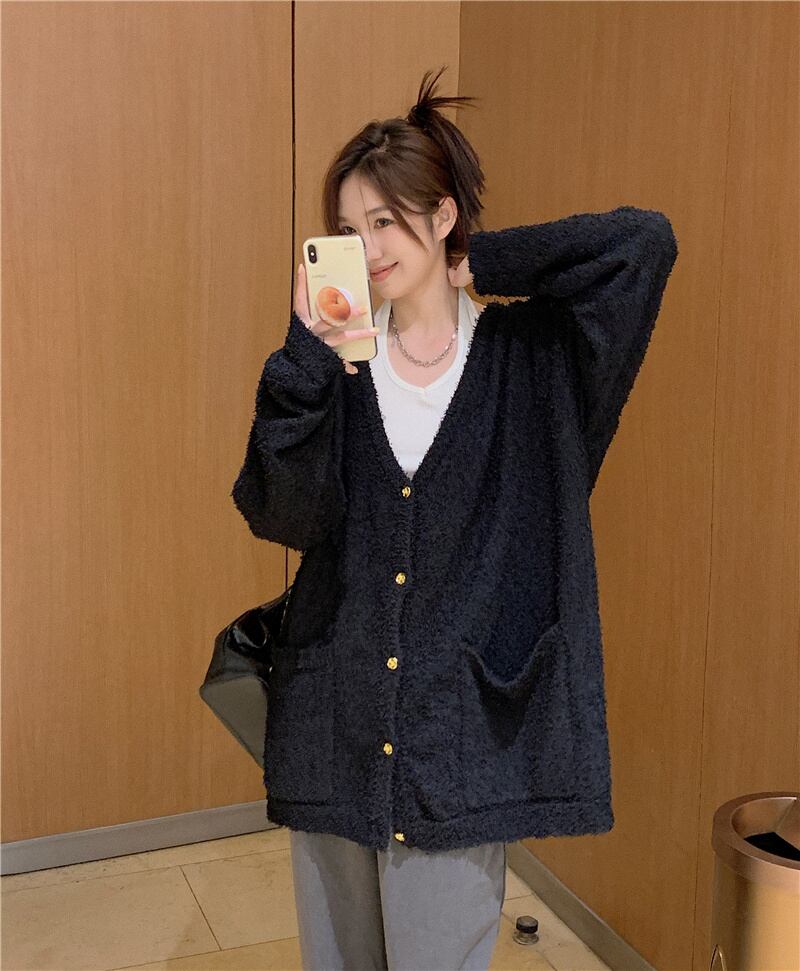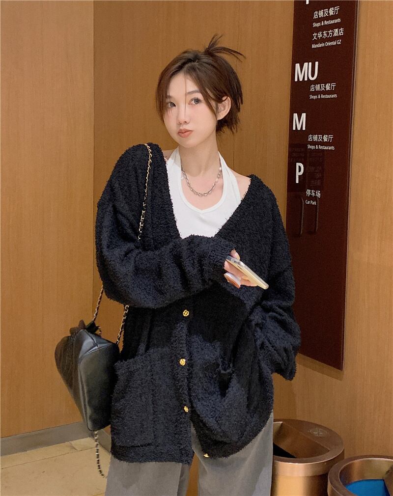 INS 秋新作 INS 気質アップ カジュアル 無地 ニット カーディガン