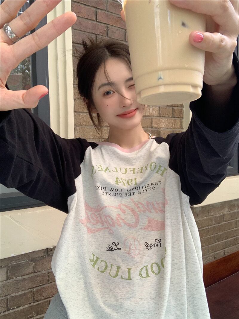 INS 秋新作 超人気 韓国系 デザイン性抜群 ラウンドネック プリント Tシャツ