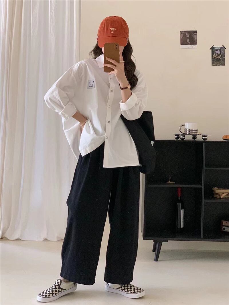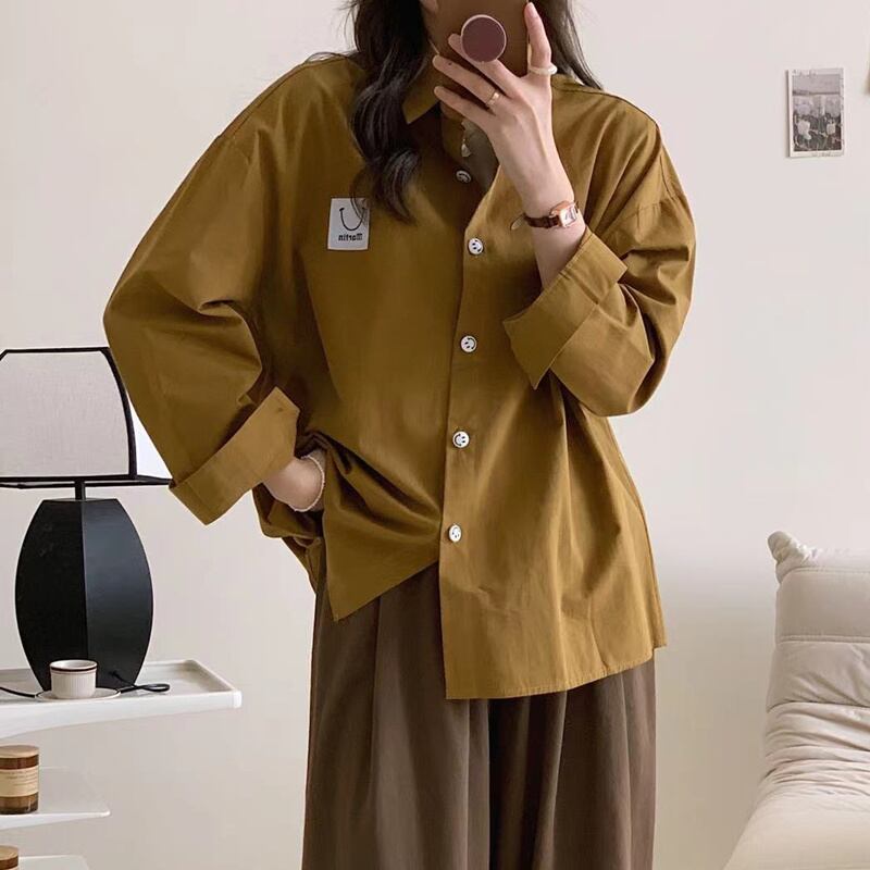 INS 秋新作 ファッション 気質 笑顔 POLOネック シングルブレスト シャツ/ブラウス