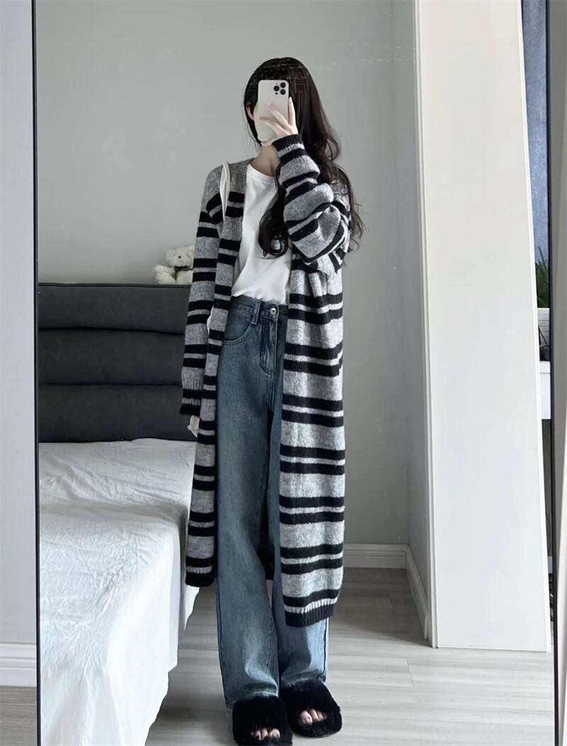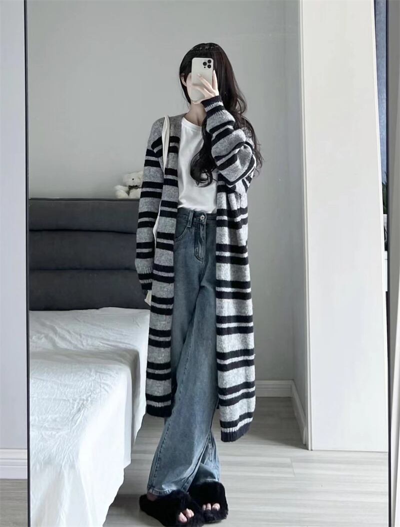 INS 秋新作 超人気 シンプル 韓国系 ストライプ柄 優しい印象 カーディガン