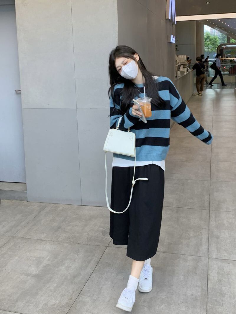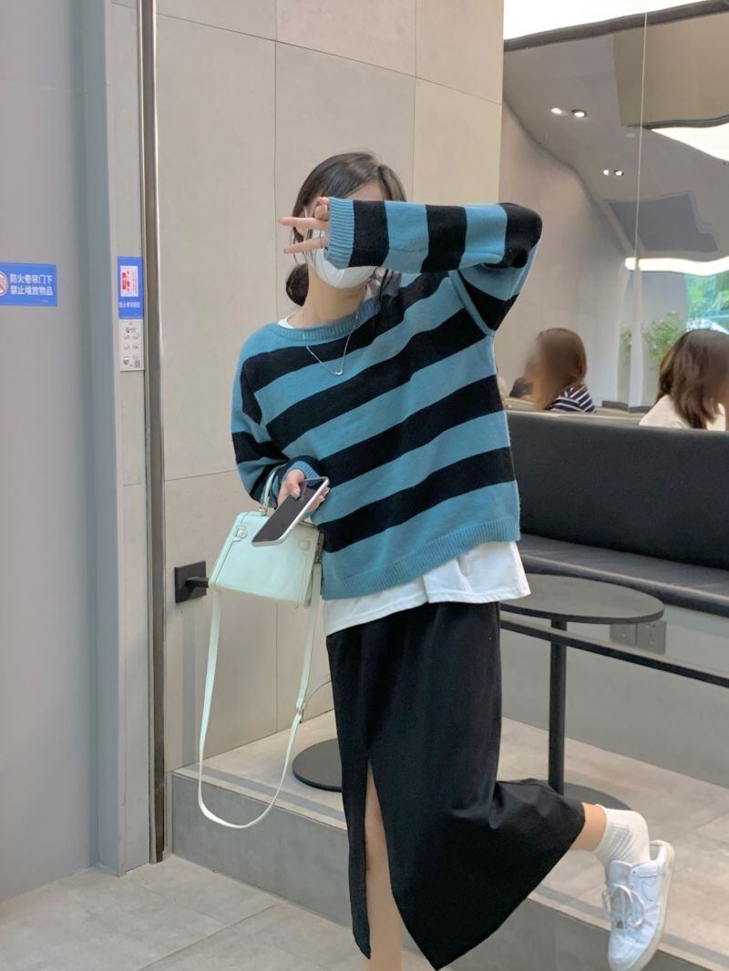 INS 秋新作 超人気 シンプル 韓国系 ストライプ柄 ウンドネック プルオーバー セーター/カットソー