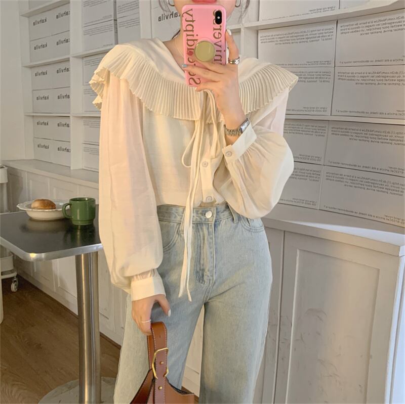 INS 秋新作 ファッション 折り襟 気質 シングルブレスト シャツ/ブラウス