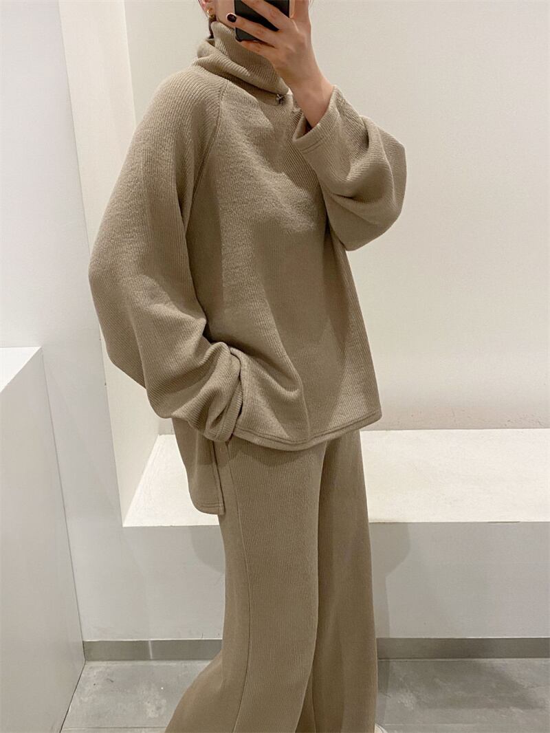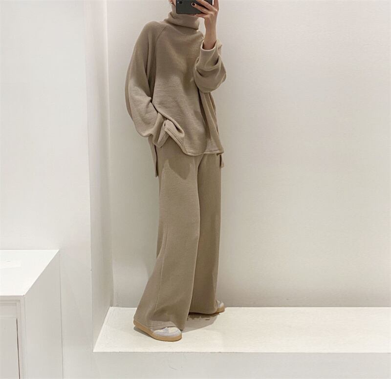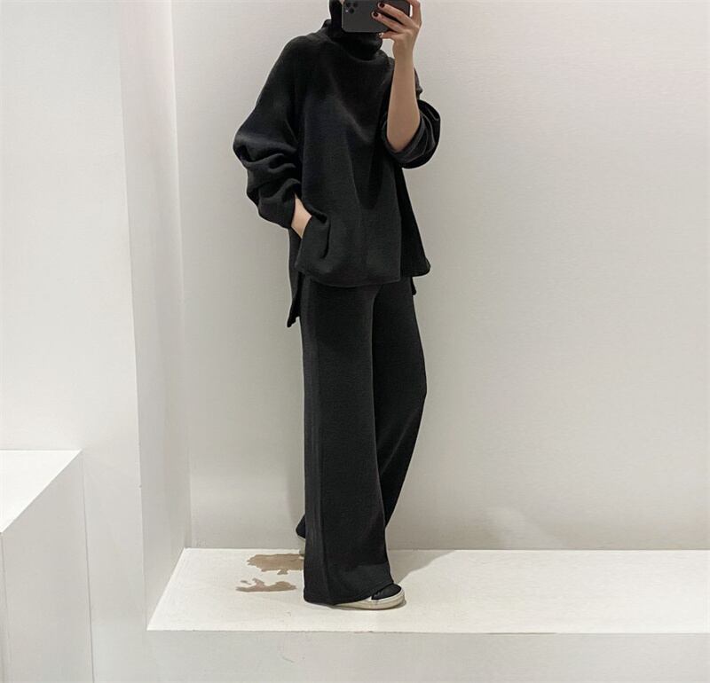 INS 秋新作 長袖 ニット ハイネック セーター/ハイウエストパンツ カジュアルセットアップ