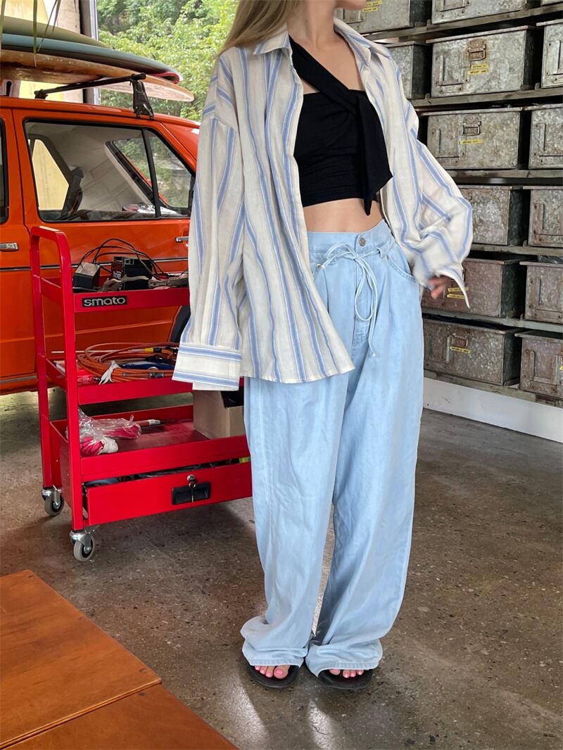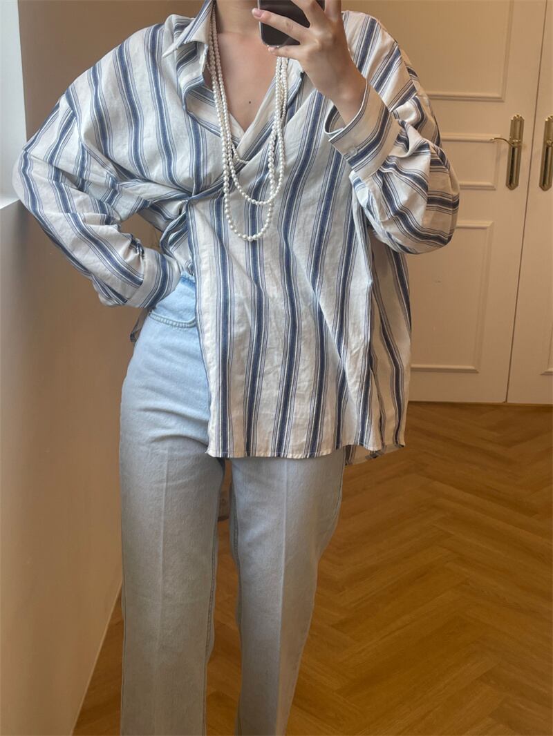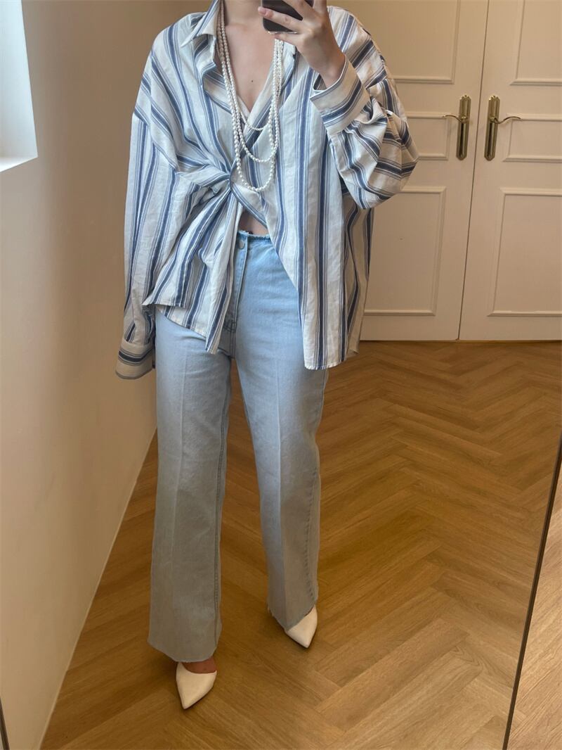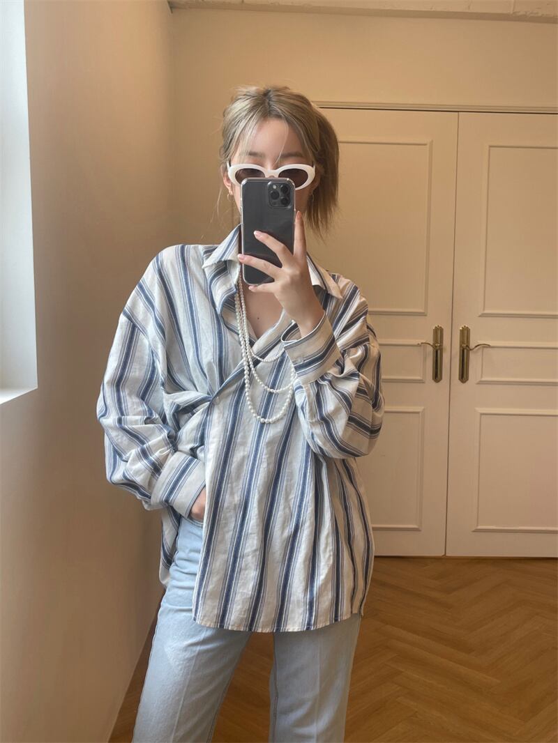 INS 秋新作 ファッション レトロ 気質 ストライプ柄 シングルブレスト長袖 シャツ/ブラウス