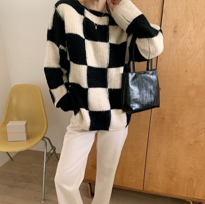 INS 秋新作 カジュアル シンプル チエック柄 長袖 ラウンドネック セーター/カットソー