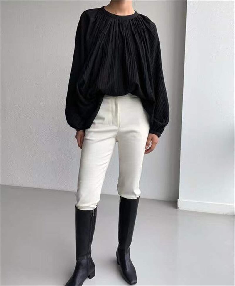 INS 秋新作 ファッション レトロ 気質 シンプル ラウンドネック 長袖 シャツ/ブラウス