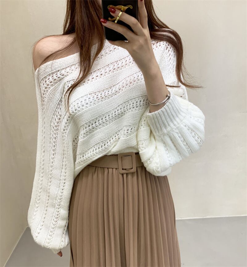 INS 秋新作 カジュアル ファッション ボートネック 合わせやすい セーター