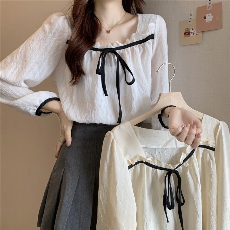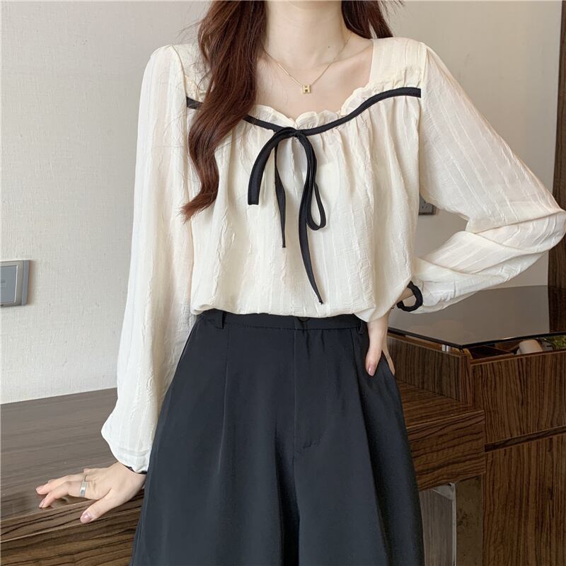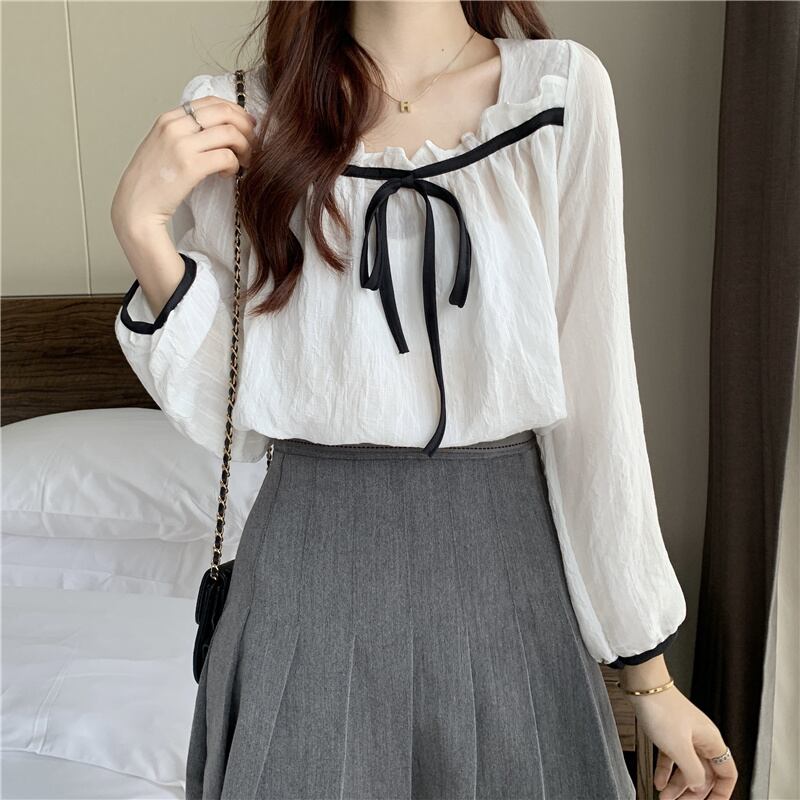 INS 秋新作 ファッション レトロ 気質 シンプル リボン シャツ/ブラウス