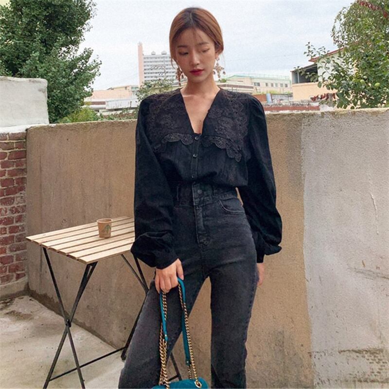 INS 秋新作 レトロ 韓国ファッションレース エレガント シャツ