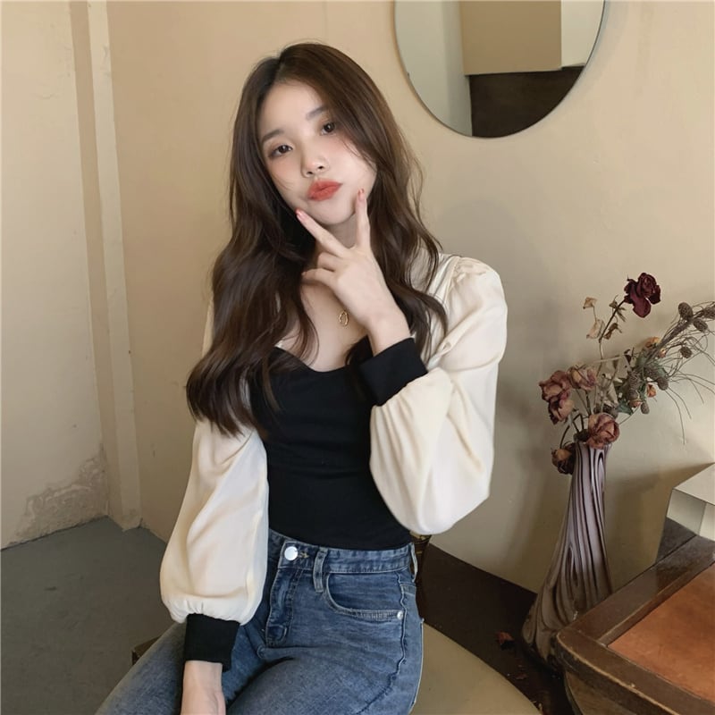 INS 秋新作 ファッション レトロ 気質 シンプル 長袖 配色 切り替え シャツ/ブラウス