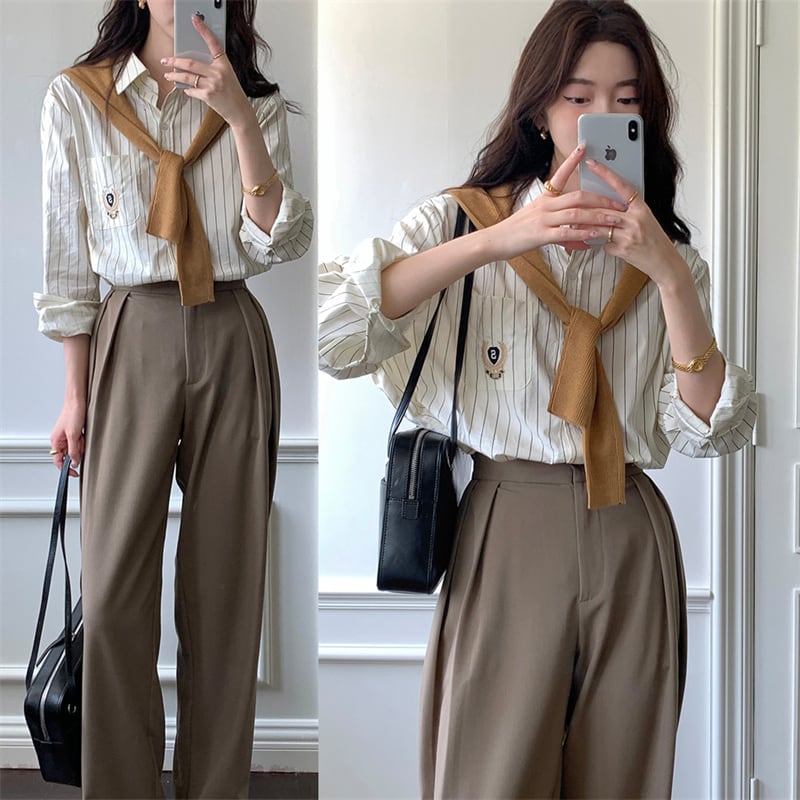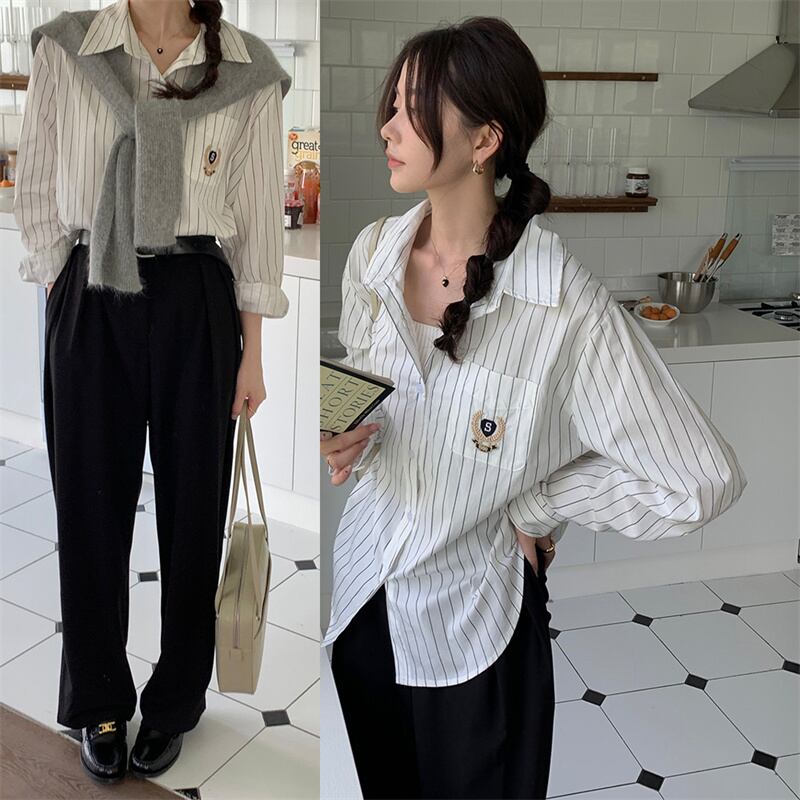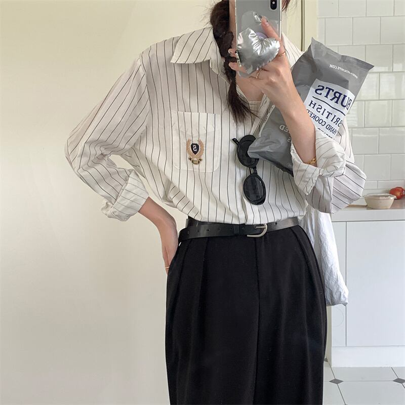 INS 秋新作 ファッション デザイン ストライプ 柄 キャンパス シャツ