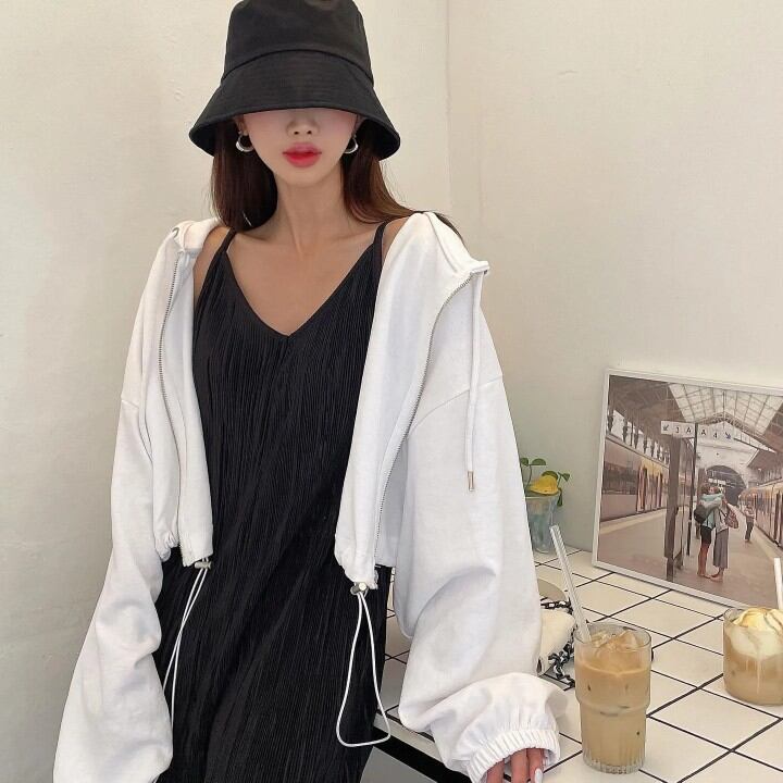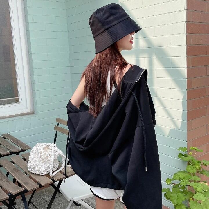 INS 秋新作 カジュアル レイジー風 ゆったり 長袖 フート付き ジッパー ミニ丈 パーカー