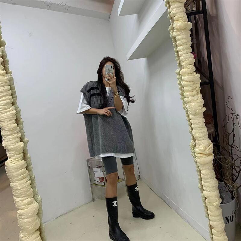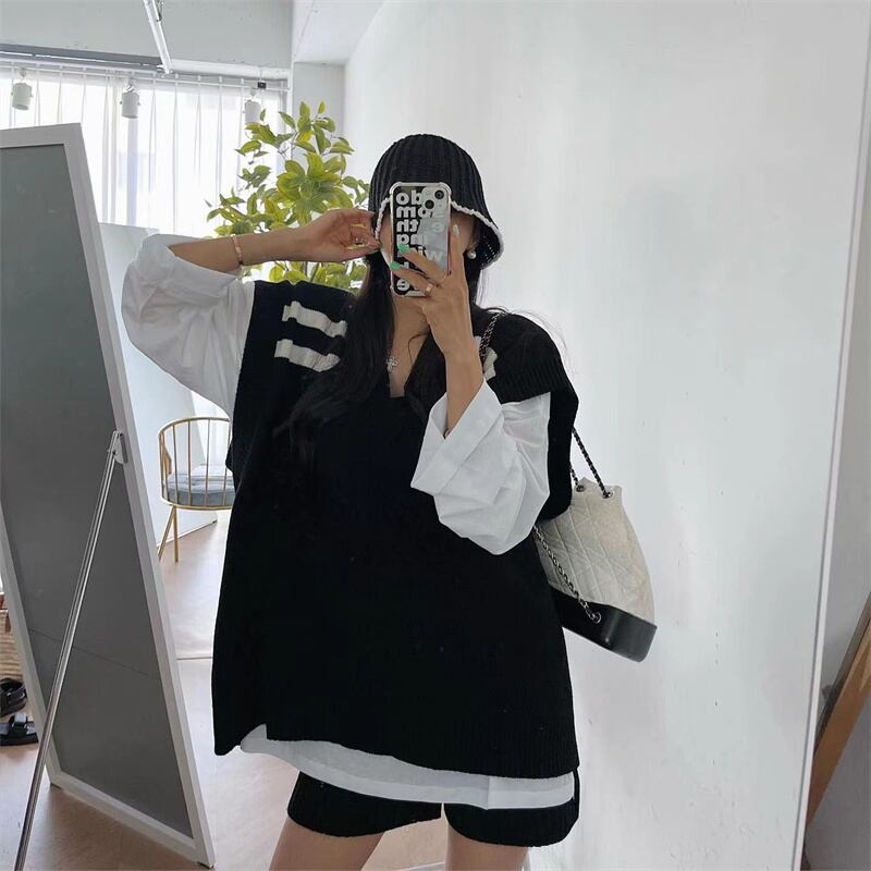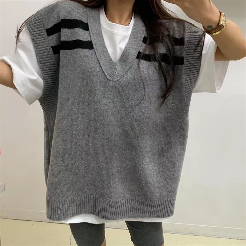 INS 秋新作 カジュアル レトロ 気質 ストライプ柄 ニット生地 タンクトップ