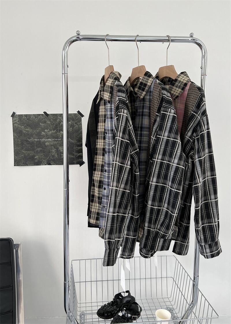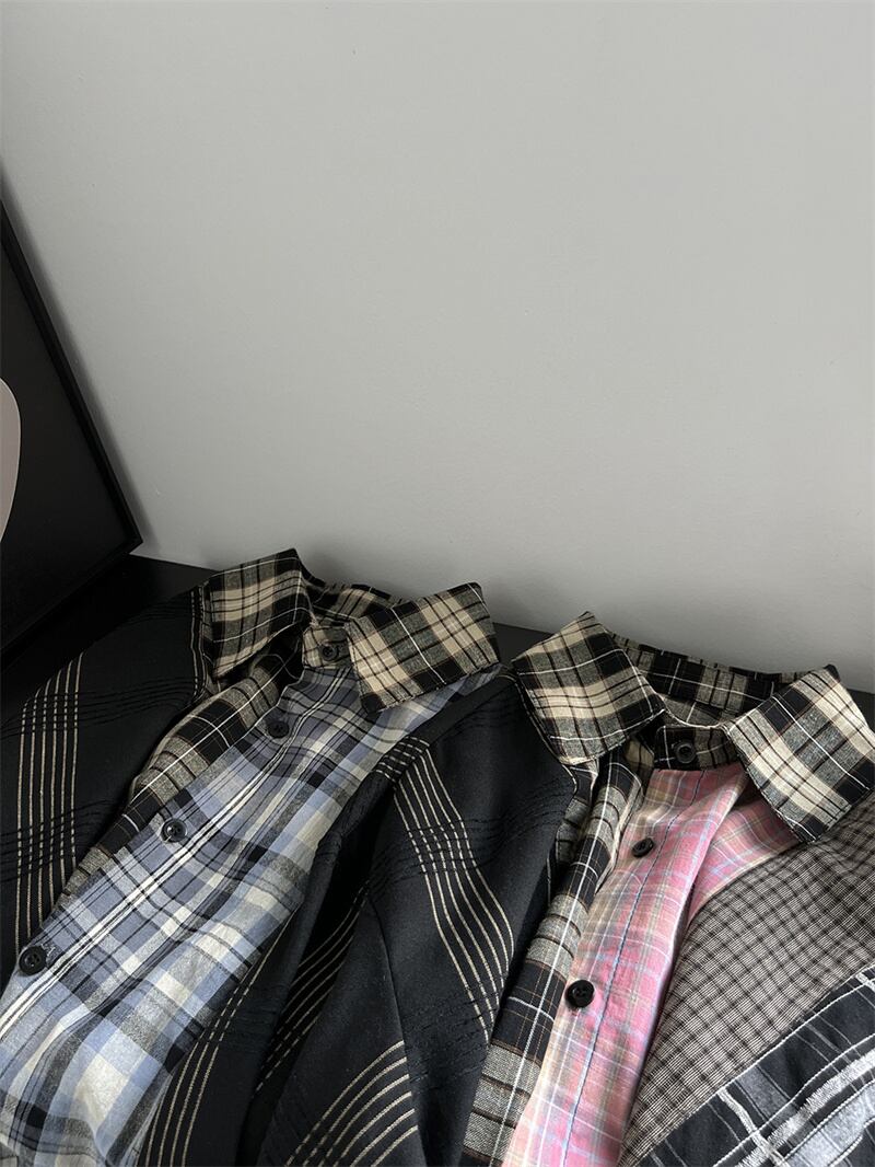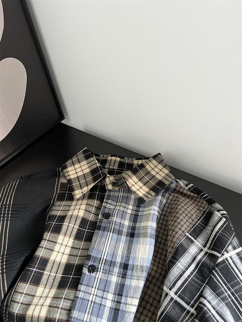 INS 秋新作 カジュアル レトロ キャンパス チェック スプライス拼接 ジャケット シャツ