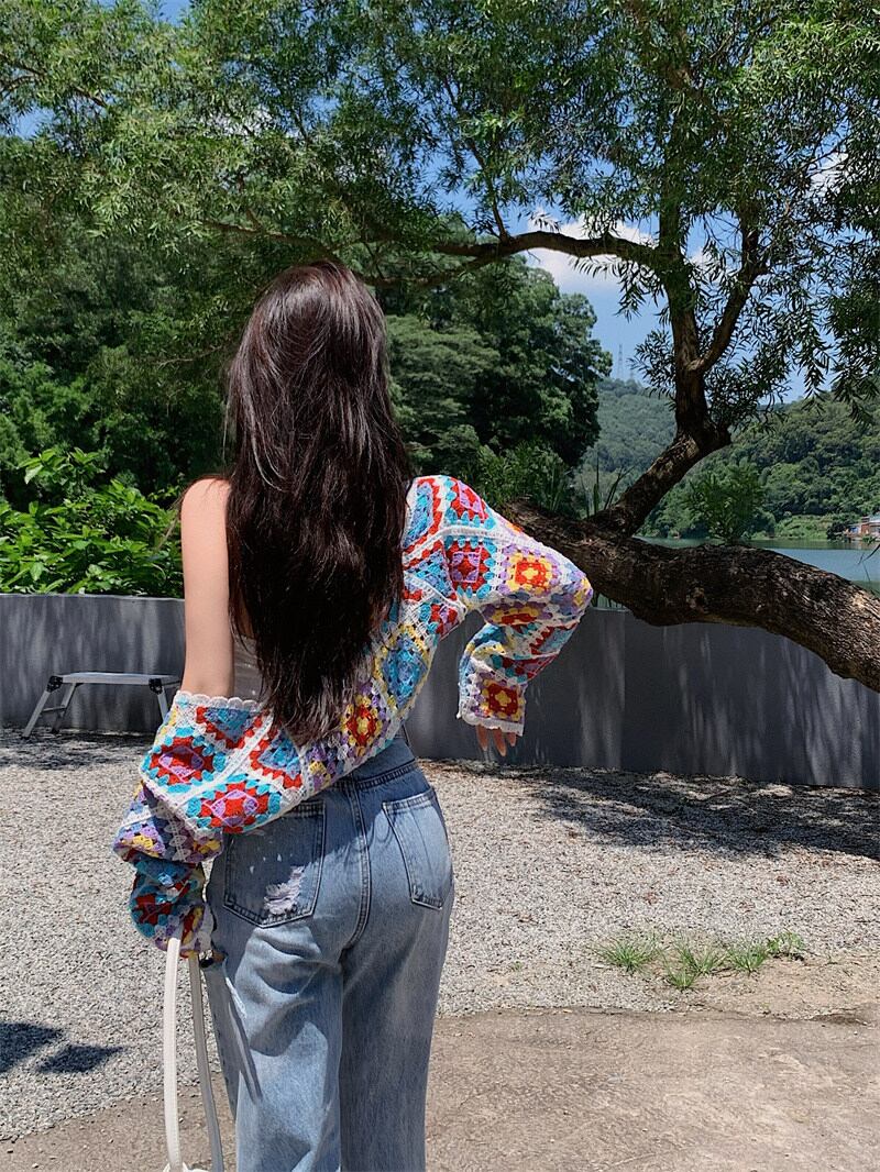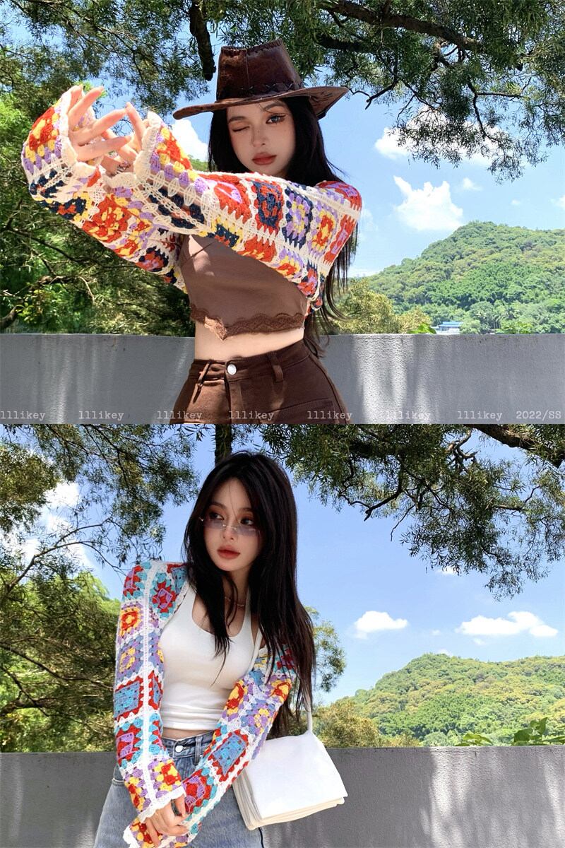 INS 夏新作 透かし彫り 日焼け止め韓国ファッション 長袖 ニット生地 カーディガン