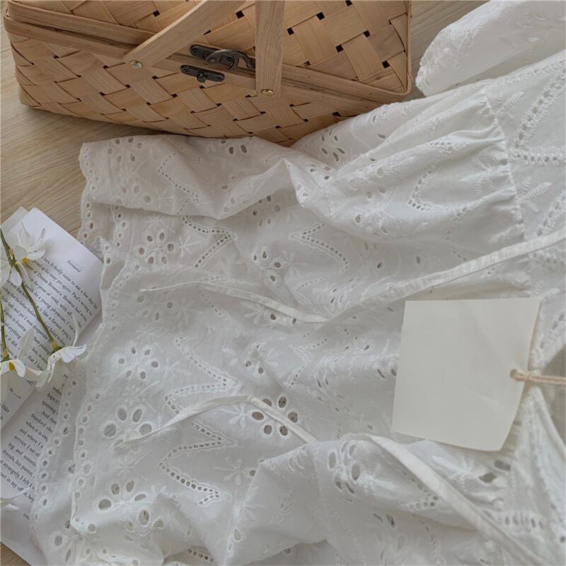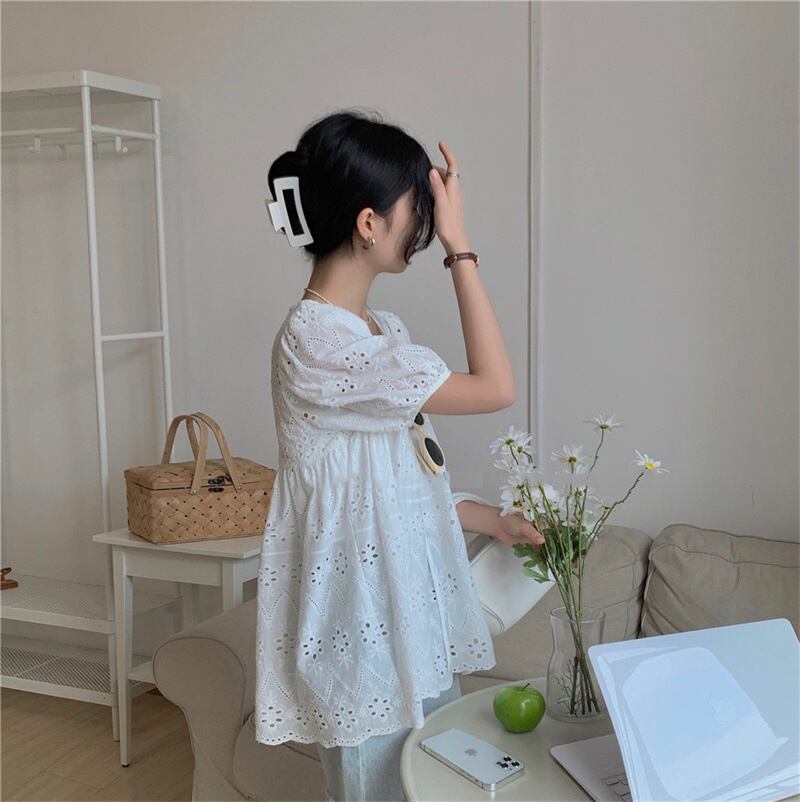 INS 夏新作 流行の予感 透かし彫り Vネック パフスリーブ シャツ/ブラウス