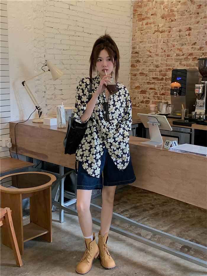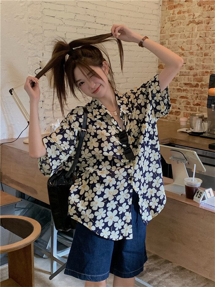 INS 夏新作 流行の予感 レトロ ゆったり シングルブレスト 花柄 シャツ/ブラウス