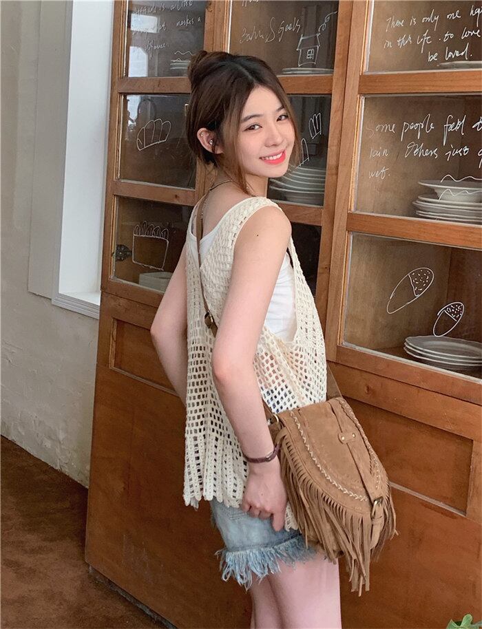 INS 夏新作 流行の予感 シンプル 透かし彫りノースリーブ ニット生地 シャツ/ブラウス