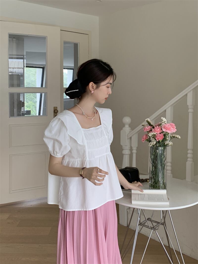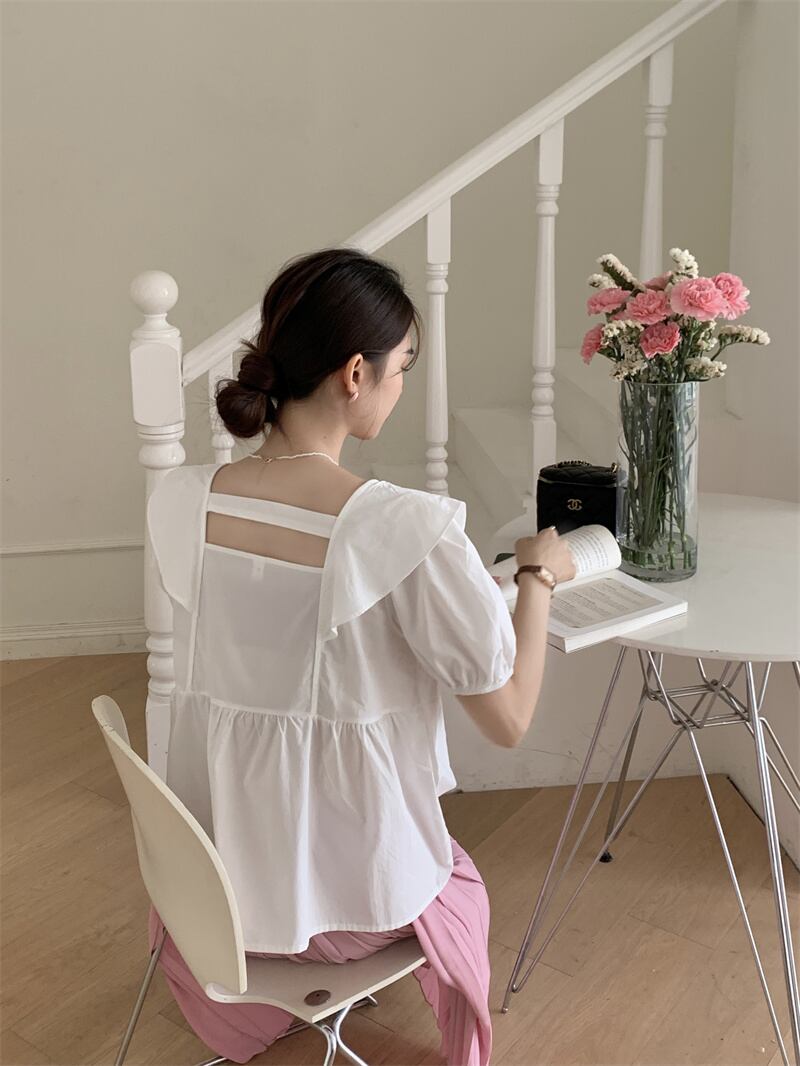 2022夏INS★ファッション 韓国風 可愛いレース スクエアネック シャツ
