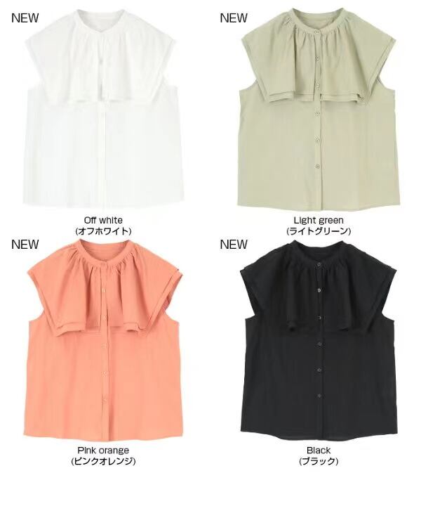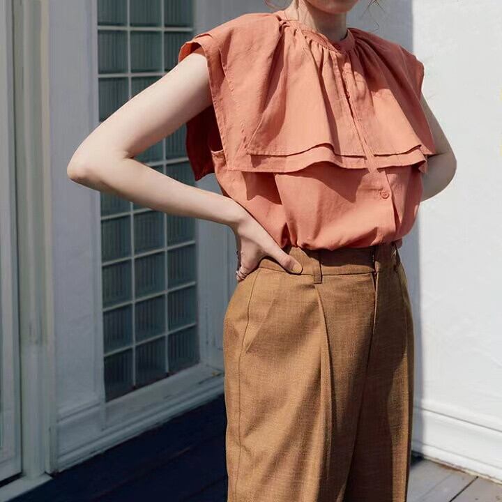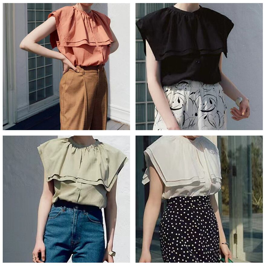 INS 新作 上品な可愛さ カジュアル シングルブレスト 無地 ノースリーブ フリル シャツ