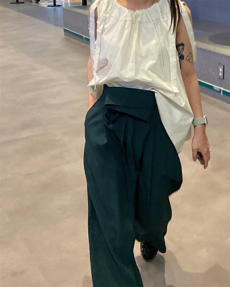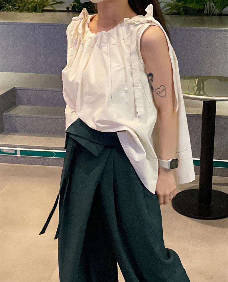 INS 新作 レトロ リボン ノースリーブ ラウンドネック タンクトップ/キャミソール