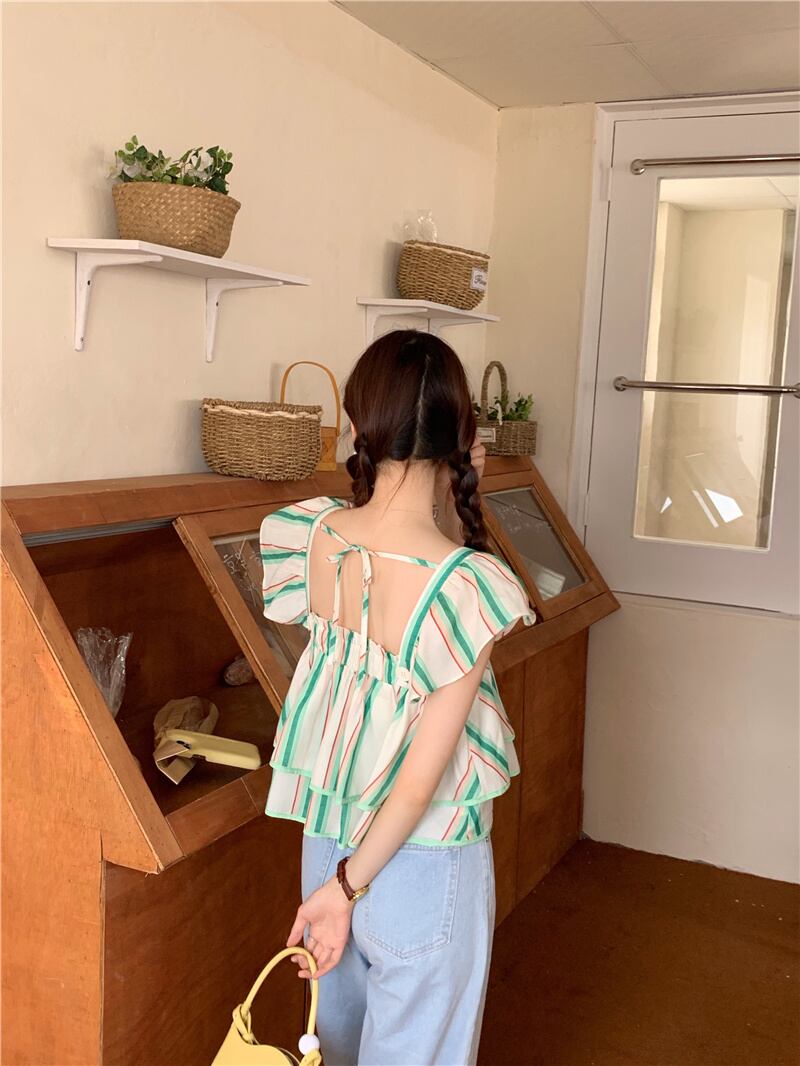 INS 新作 透かし彫り フライングスリーブ ストライプ柄 着脱可能 シャツ/ブラウス