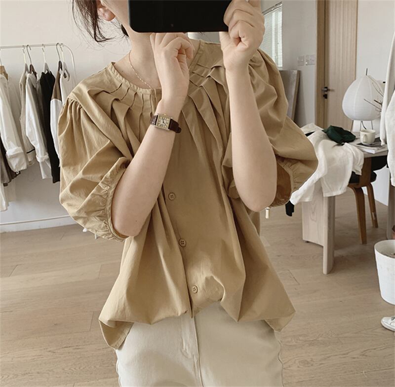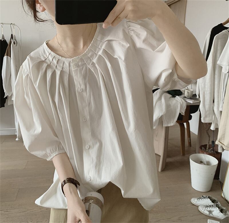 INS 新作 気質アップ シンプル ラウンドネック 半袖 シャツ/ブラウス