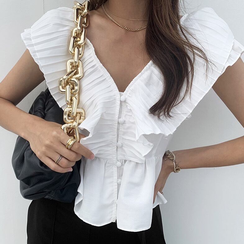 2022夏INS スウィート プリーツ フライングスリーブ シャツ/ブラウス