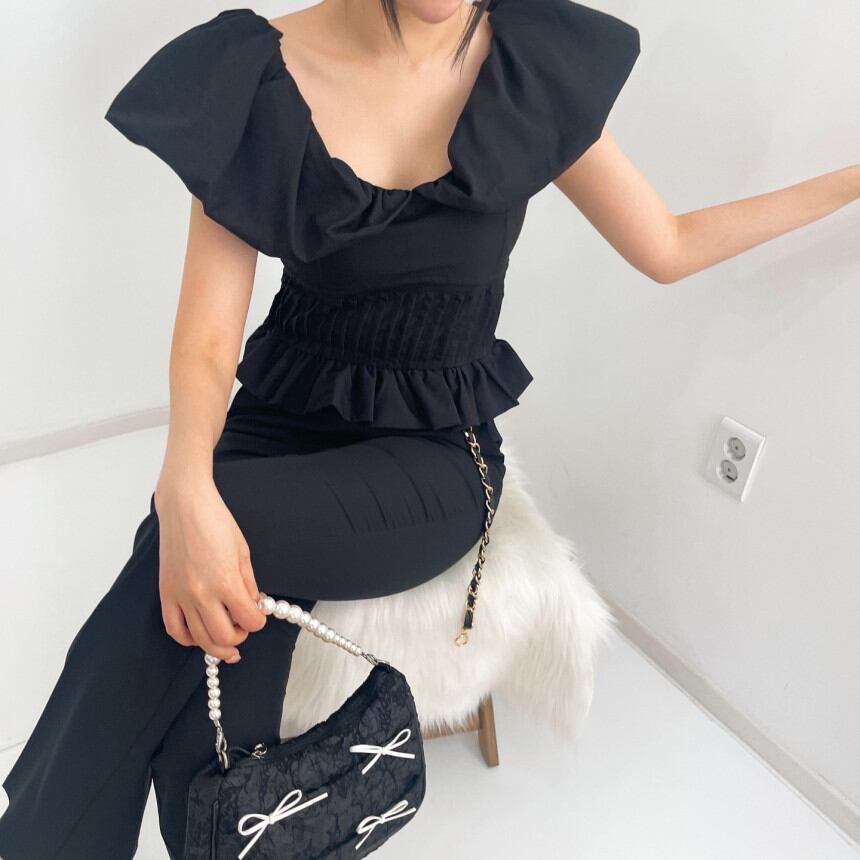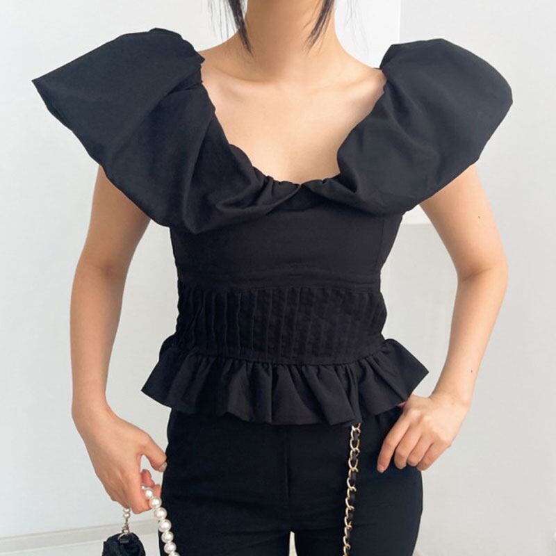 2022夏INS スウィート フリル プリーツ フライングスリーブ 折り襟 シャツ/ブラウス